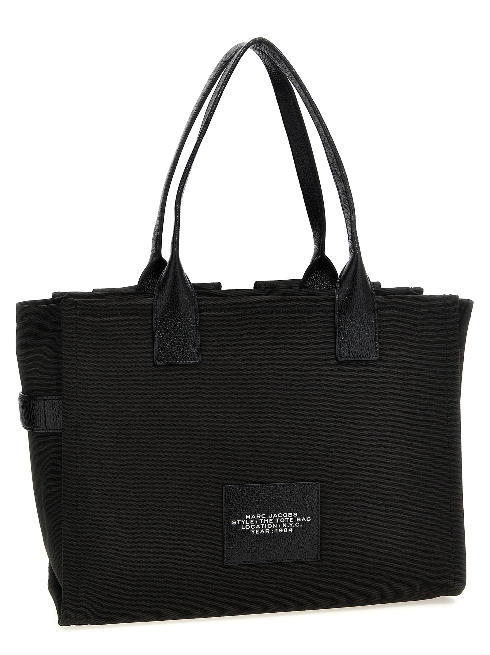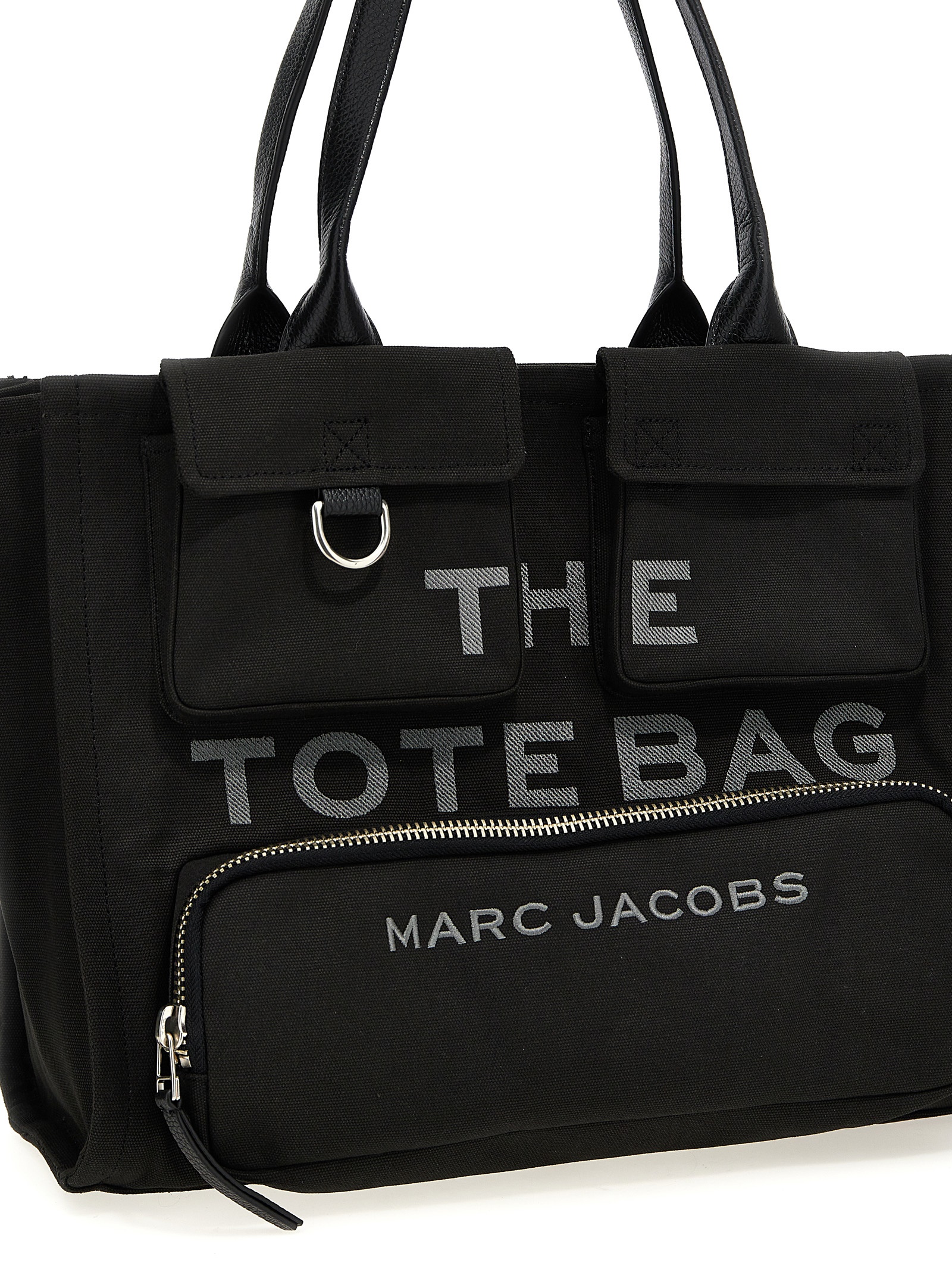 ‘The Cargo Canvas Large Tote’ textured cotton canvas shopping bag with logo embroidery and front cargo pockets, double fixed handle, zip closure, 8oz canvas lining.