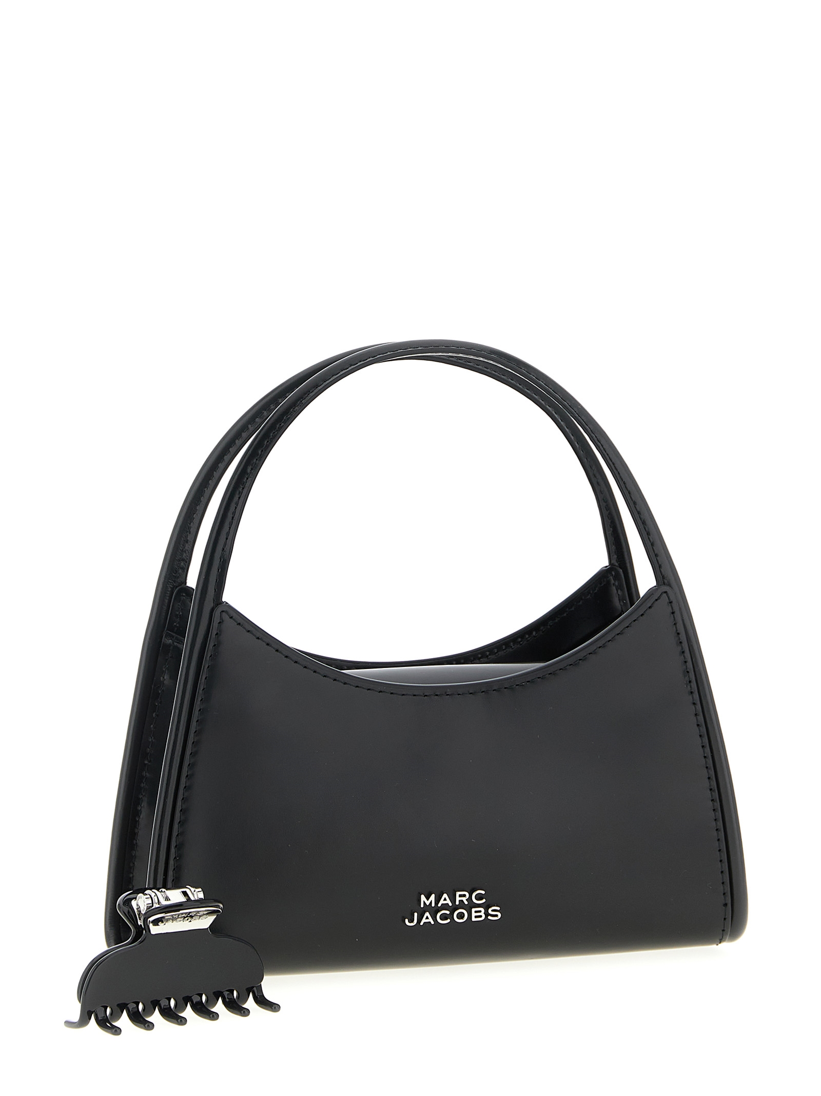 ‘The Glam Claw Clip’ leather crossbody bag, front metal lettering logo, double fixed handle with removable hair clip detail, inner magnetic flap closure, adjustable and removable shoulder strap.