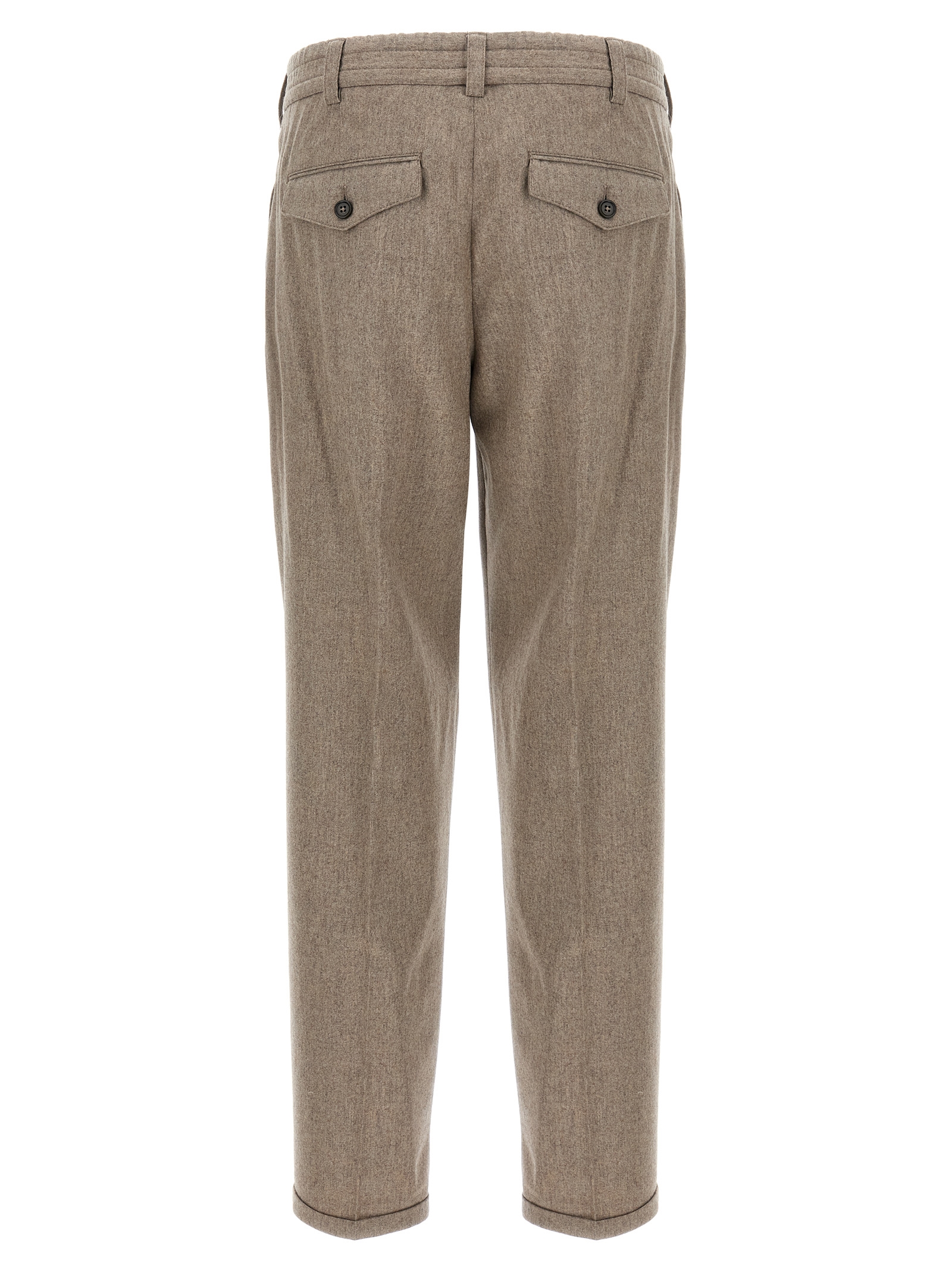 ‘The Rebel’ cool wool pants, elastic waistband, button closure, pockets, straight leg, stretched pleat, turn-up hem.