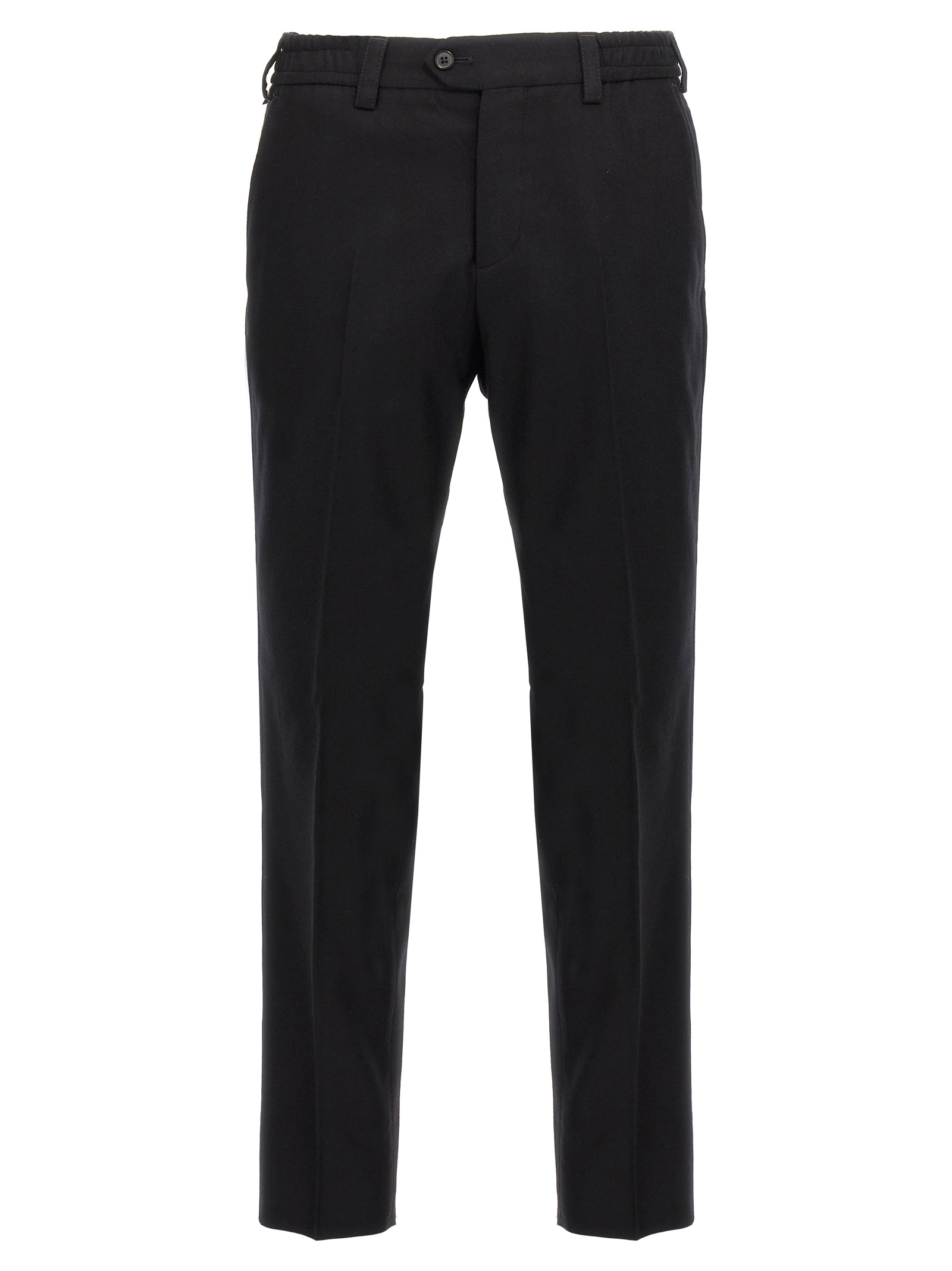 ‘The Rebel’ wool blend pants, elastic waistband, button closure, pockets.