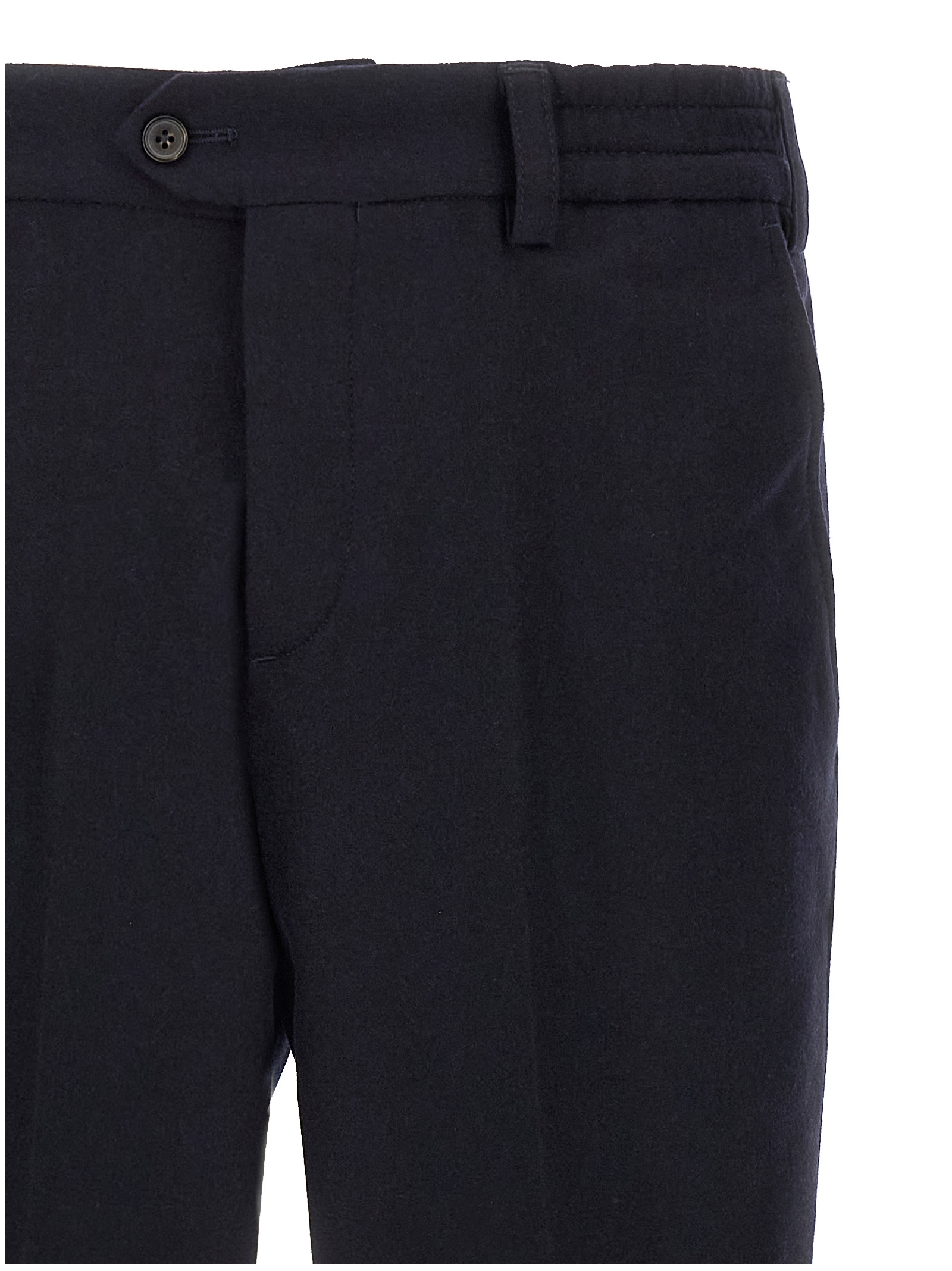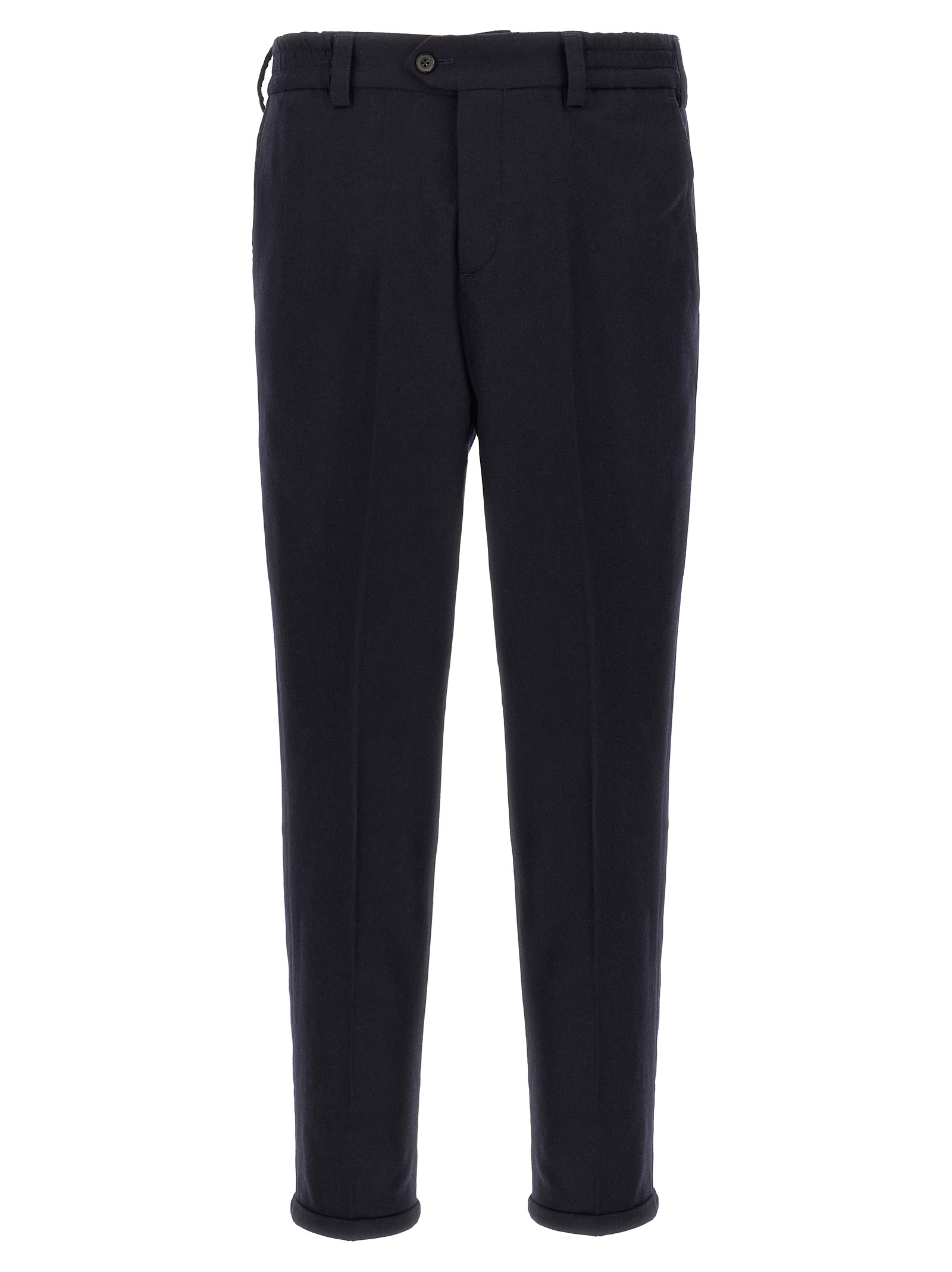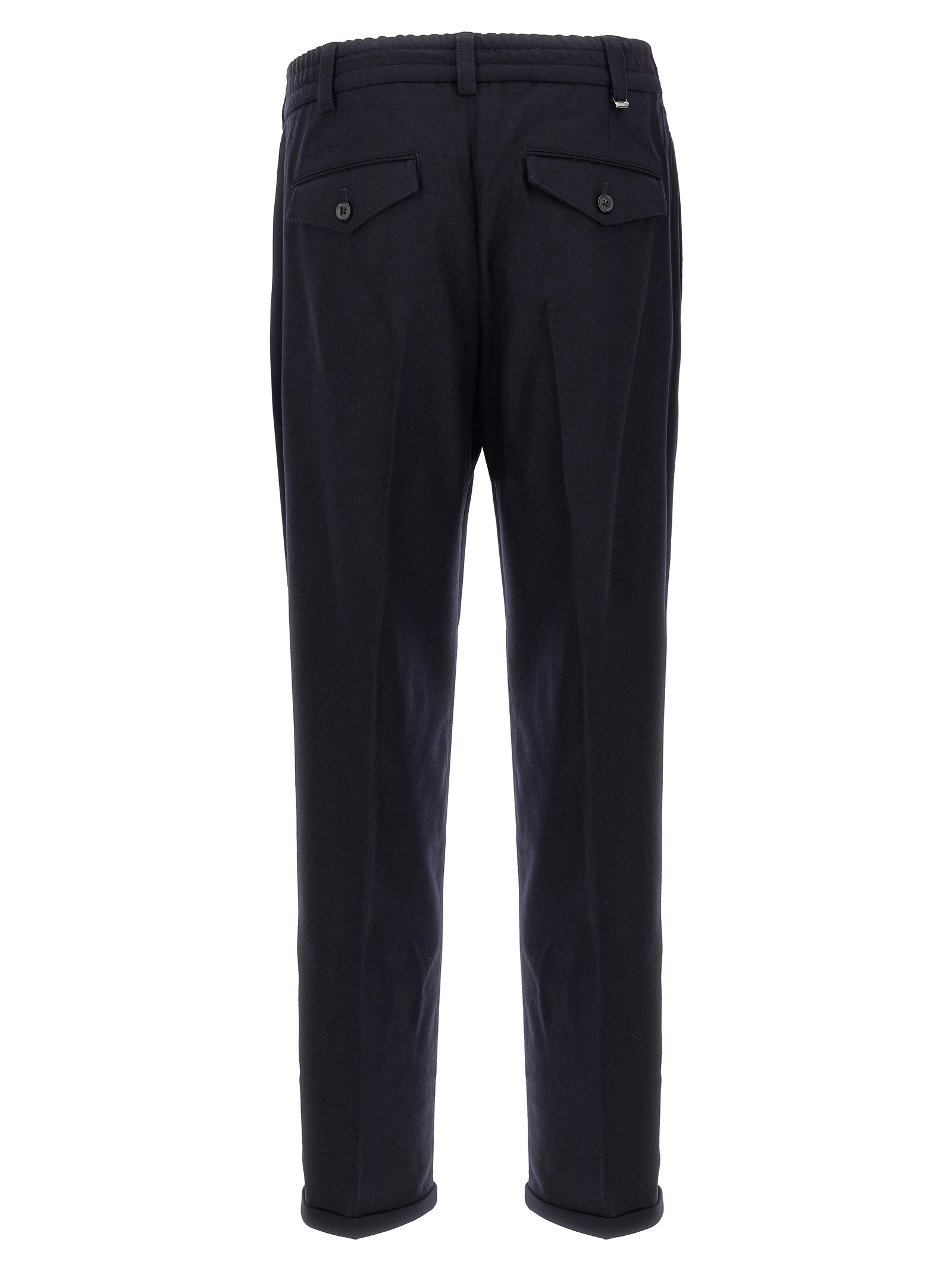 ‘The Rebel’ cool wool pants, elastic waistband, button closure, pockets, straight leg, stretched pleat, turn-up hem.