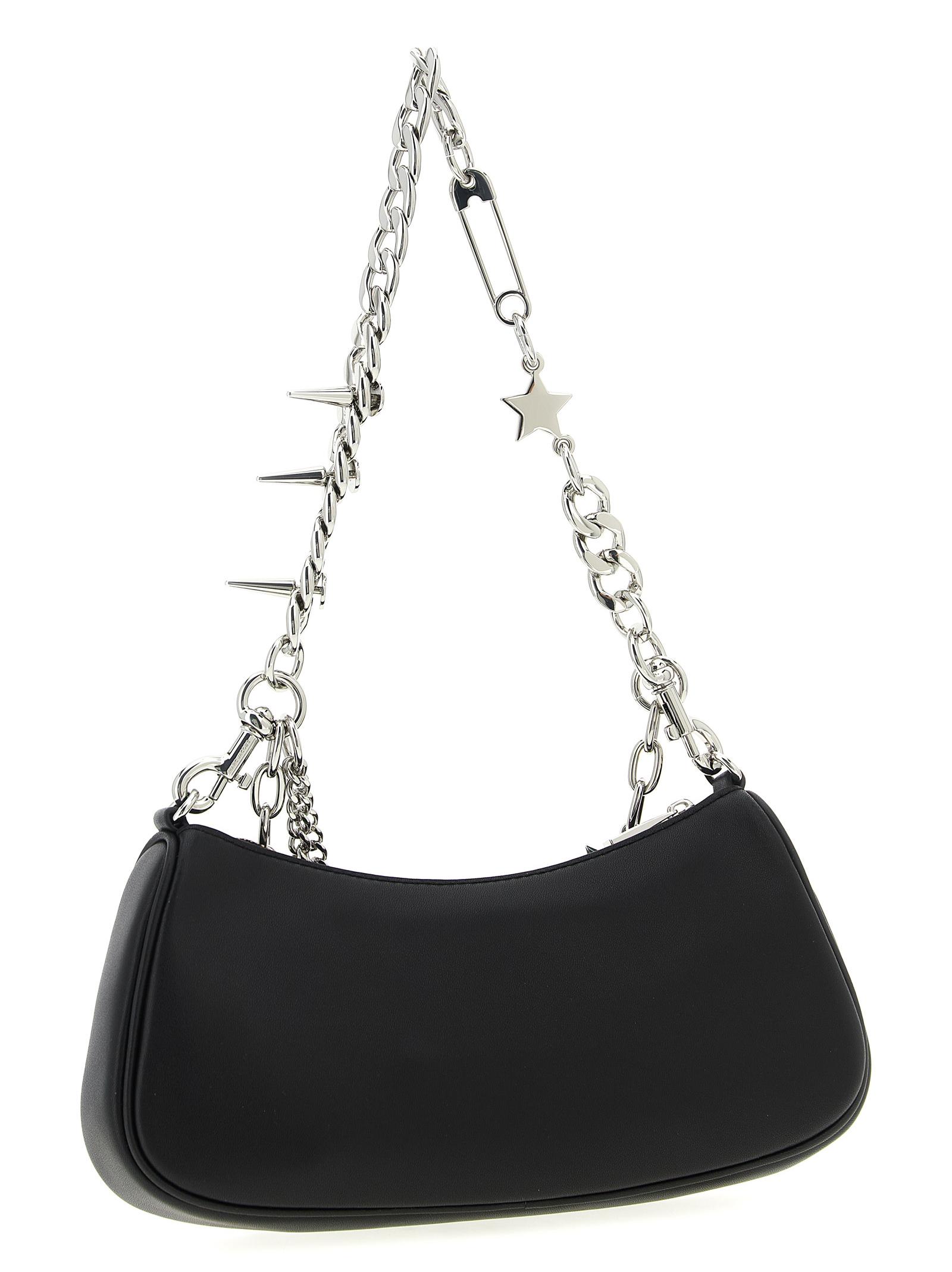 ‘The Star Charm’ smooth leather shoulder bag with front embossed logo, top zip closure, multi-layer chain shoulder strap with charm, removable leather shoulder strap.