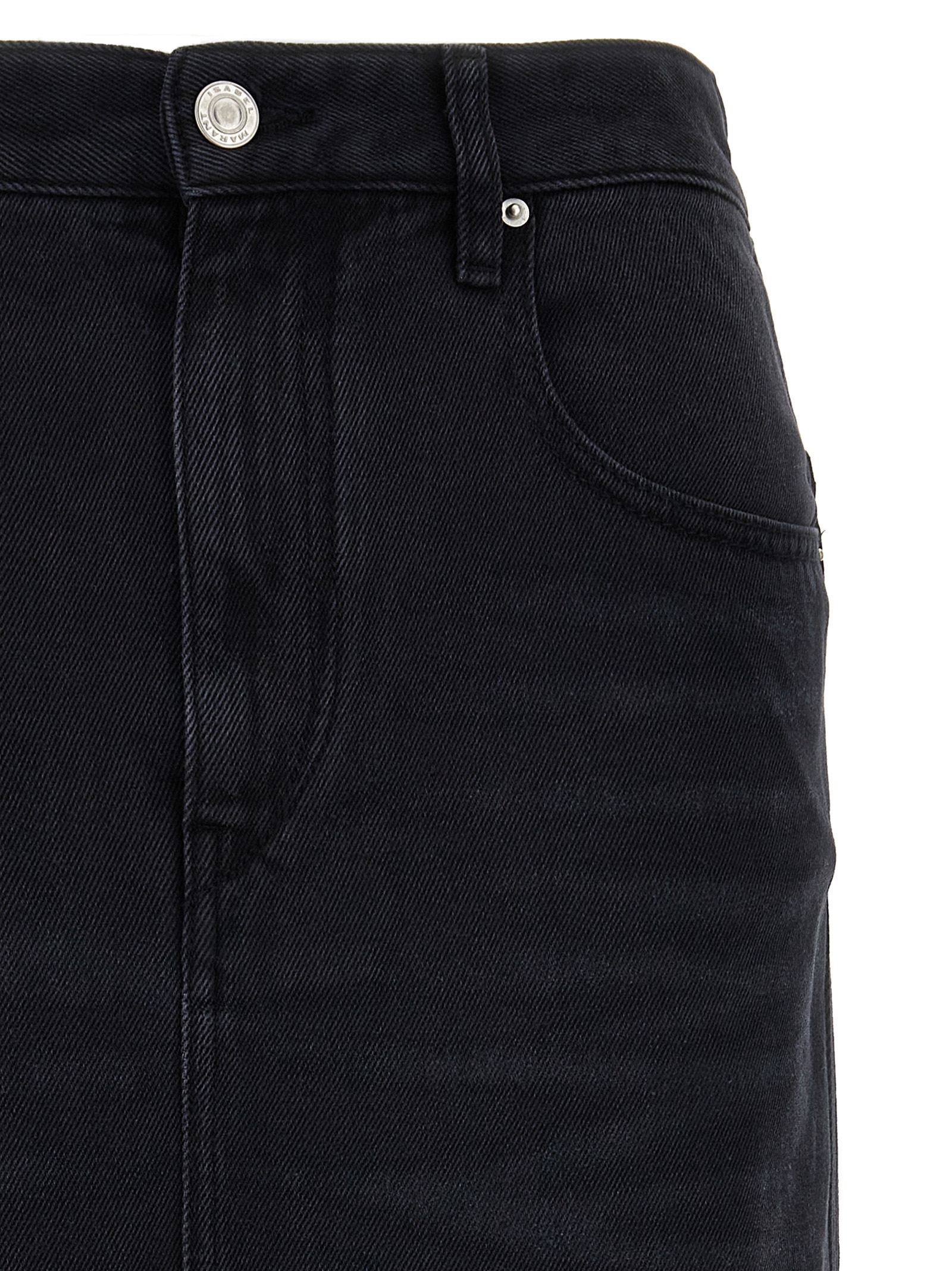 ‘Tilauria’ denim skirt, zip and button closure, five pockets, leather logo tag, front split.