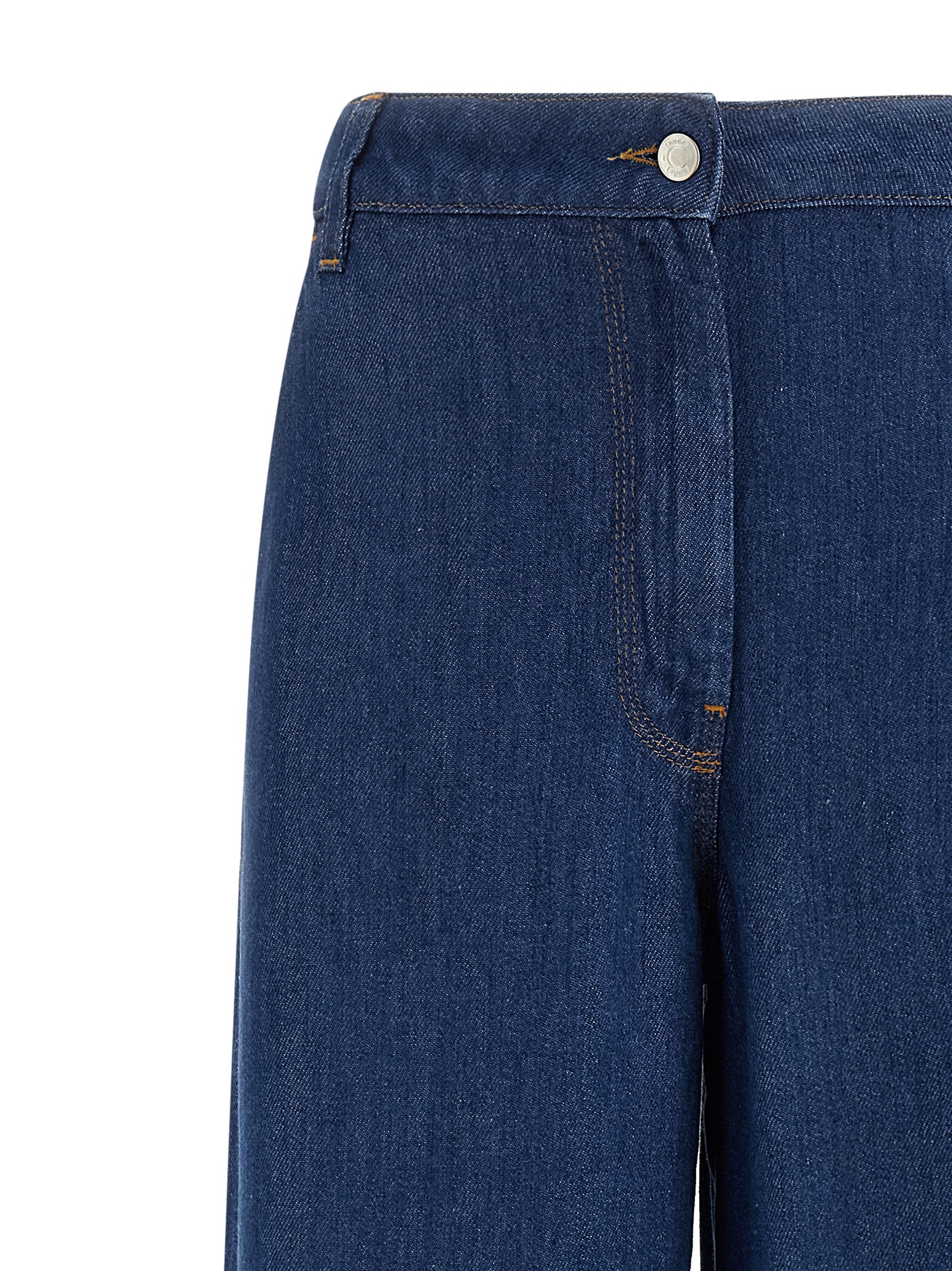 ‘Tilda’ wide leg denim jeans with high waist, front zip and button closure, belt loops at the waist, slanted side pockets and back patch pockets.