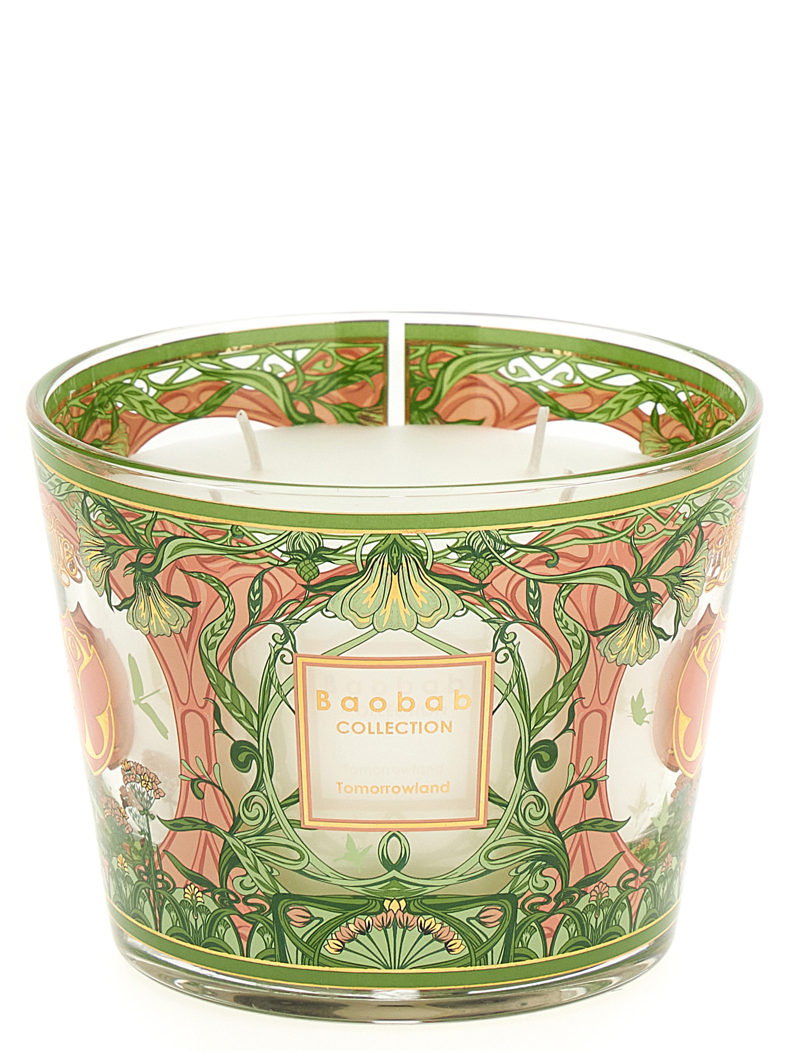 The Tomorrowland scented candle features a powder pink and green silk-screened pattern where you can see the logo of the famous Belgian music festival. The designs are inspired by the Art Nouveau movement, with organic and graceful shapes that evoke nature. Each candle is accompanied by a playlist to download via the QR code inside the lid of the box.