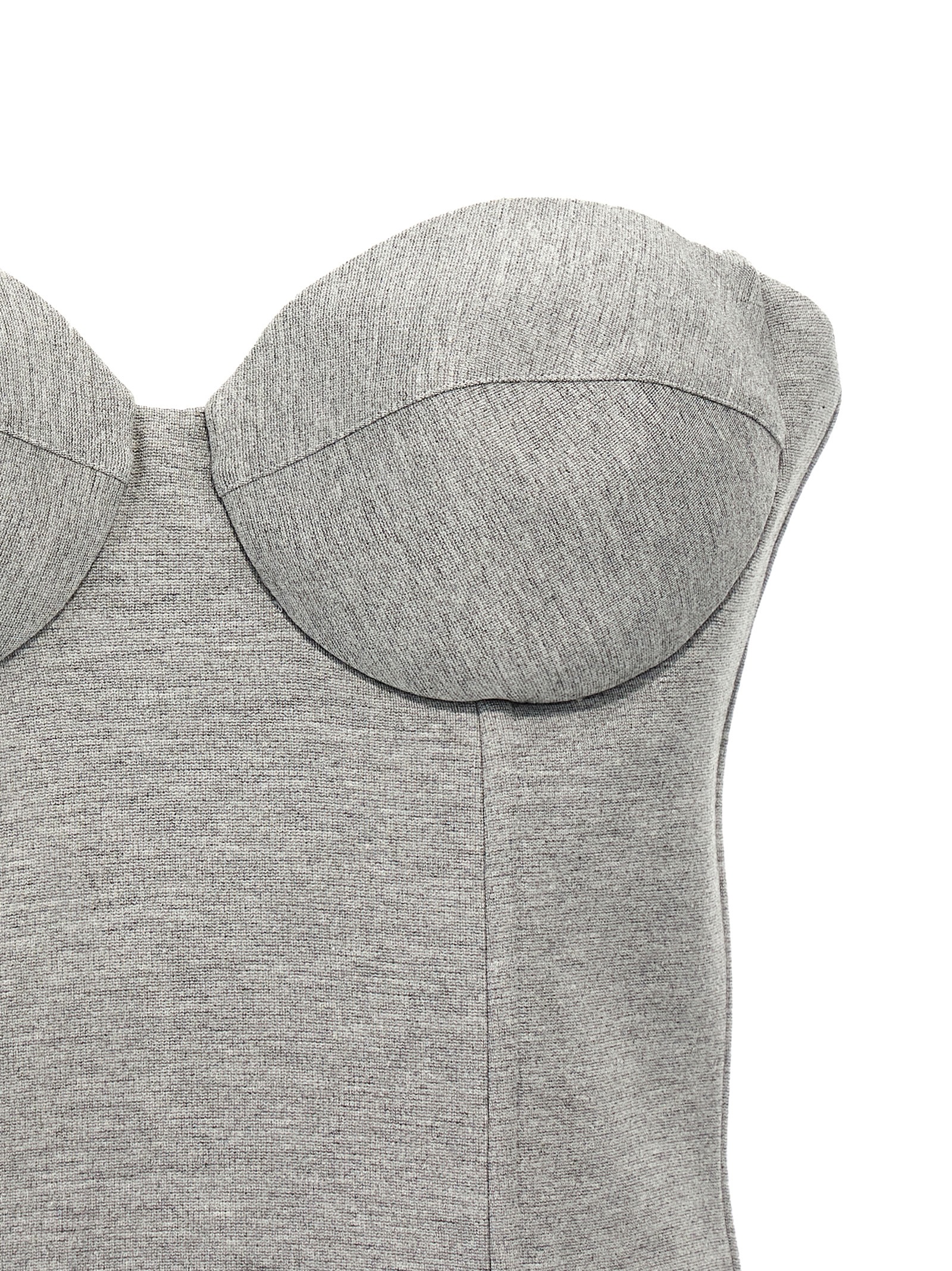 Viscose blend cropped bustier top with sweetheart neckline, underwire cups, and back hook closure.