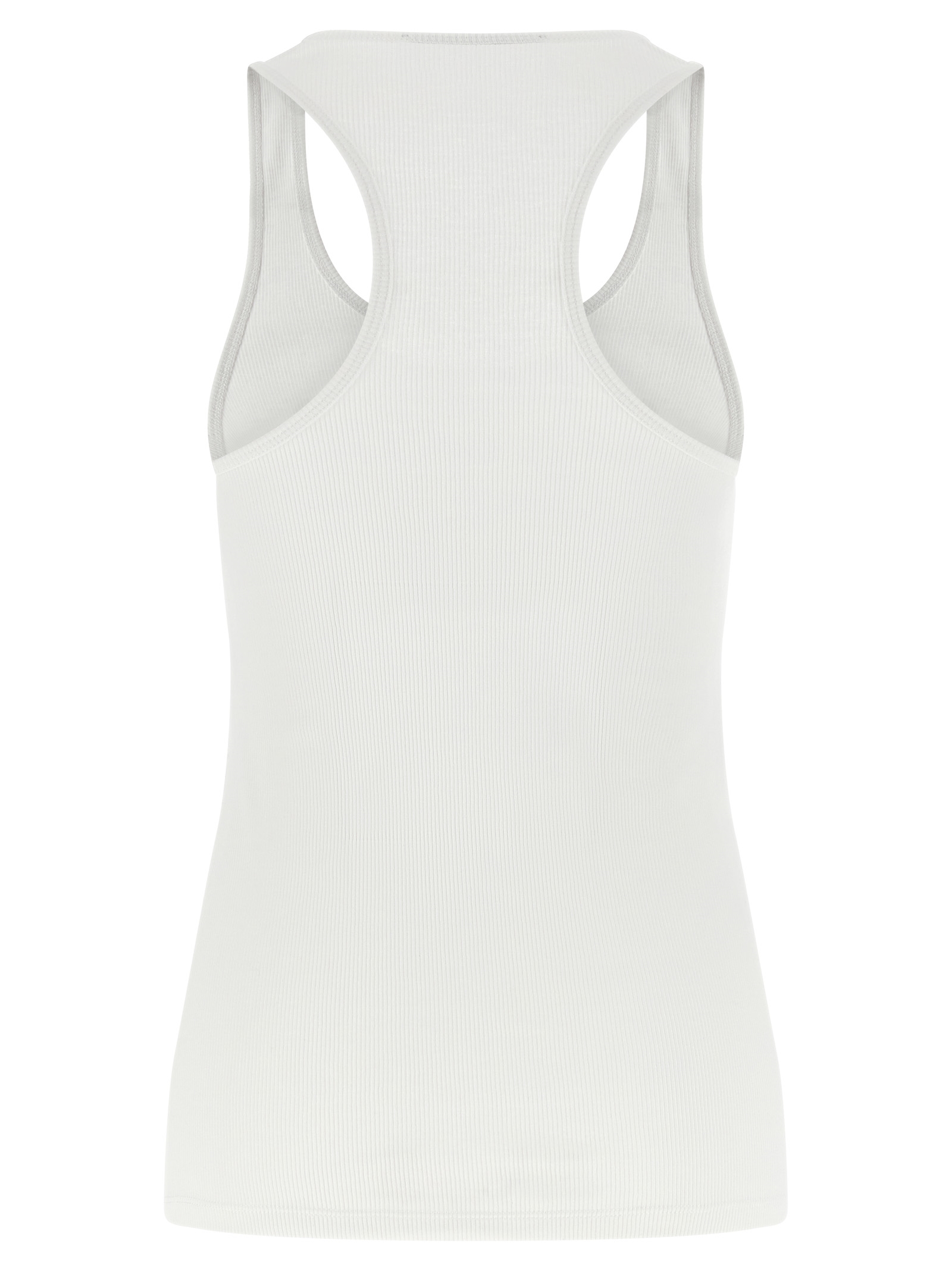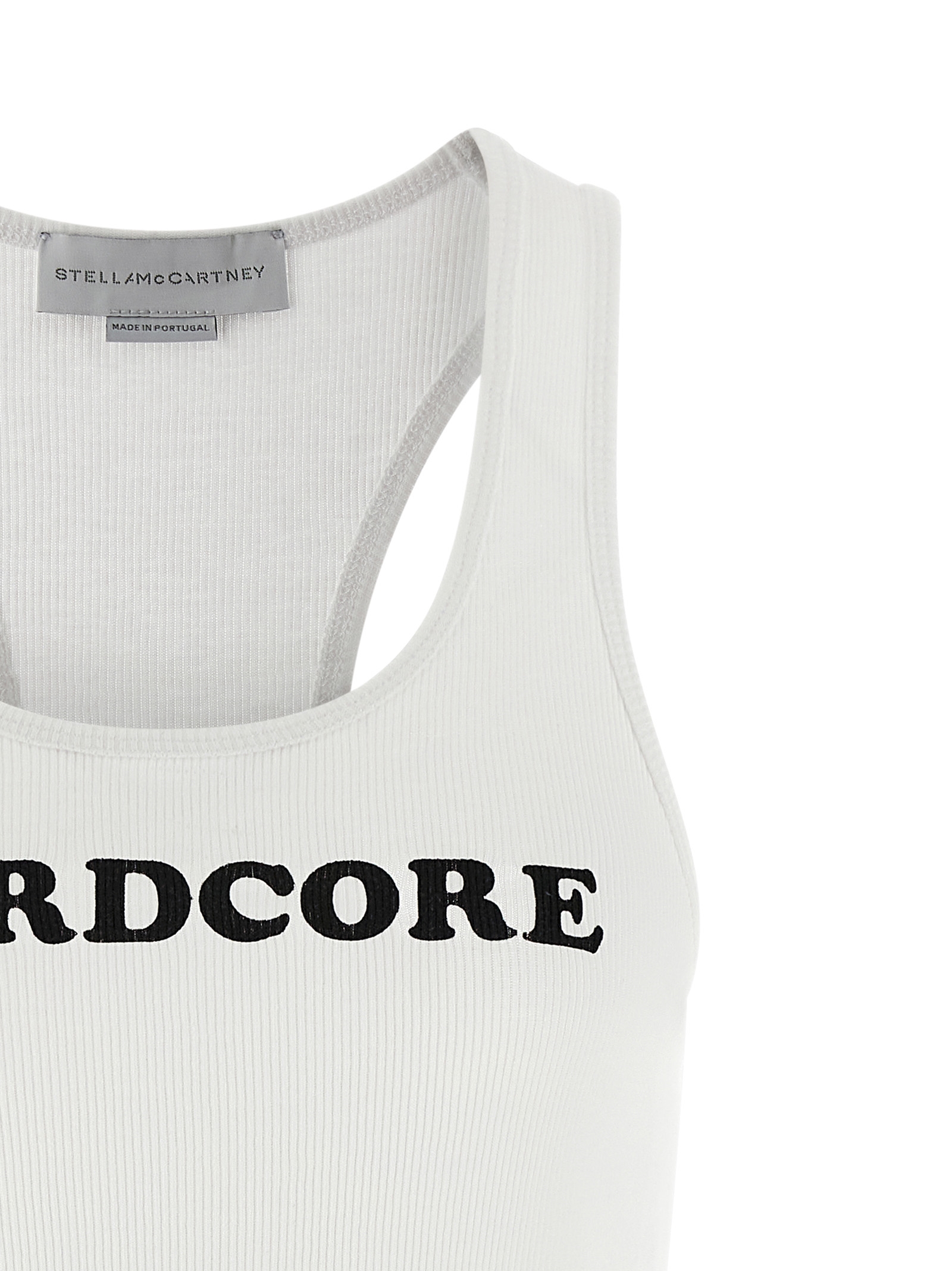 Sleeveless top in stretch cotton with round neckline, front ‘Hardcore’ slogan print.
