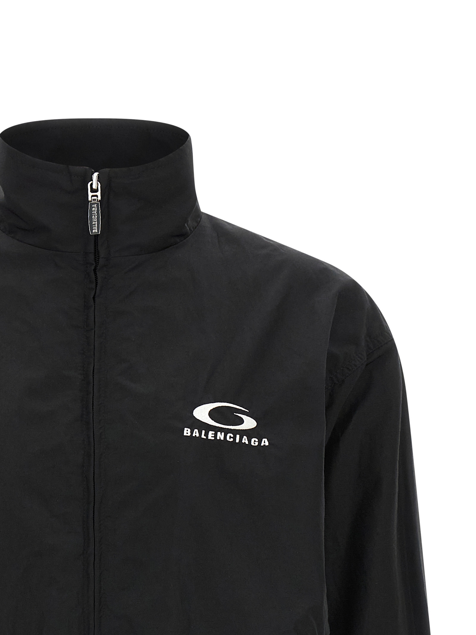 ‘Tracksuit’ cotton blend bomber jacket, breathable mesh lining, high neck, logo embroidery on the front and back, front zip closure, pockets, long sleeves with elastic cuffs, elastic hem.