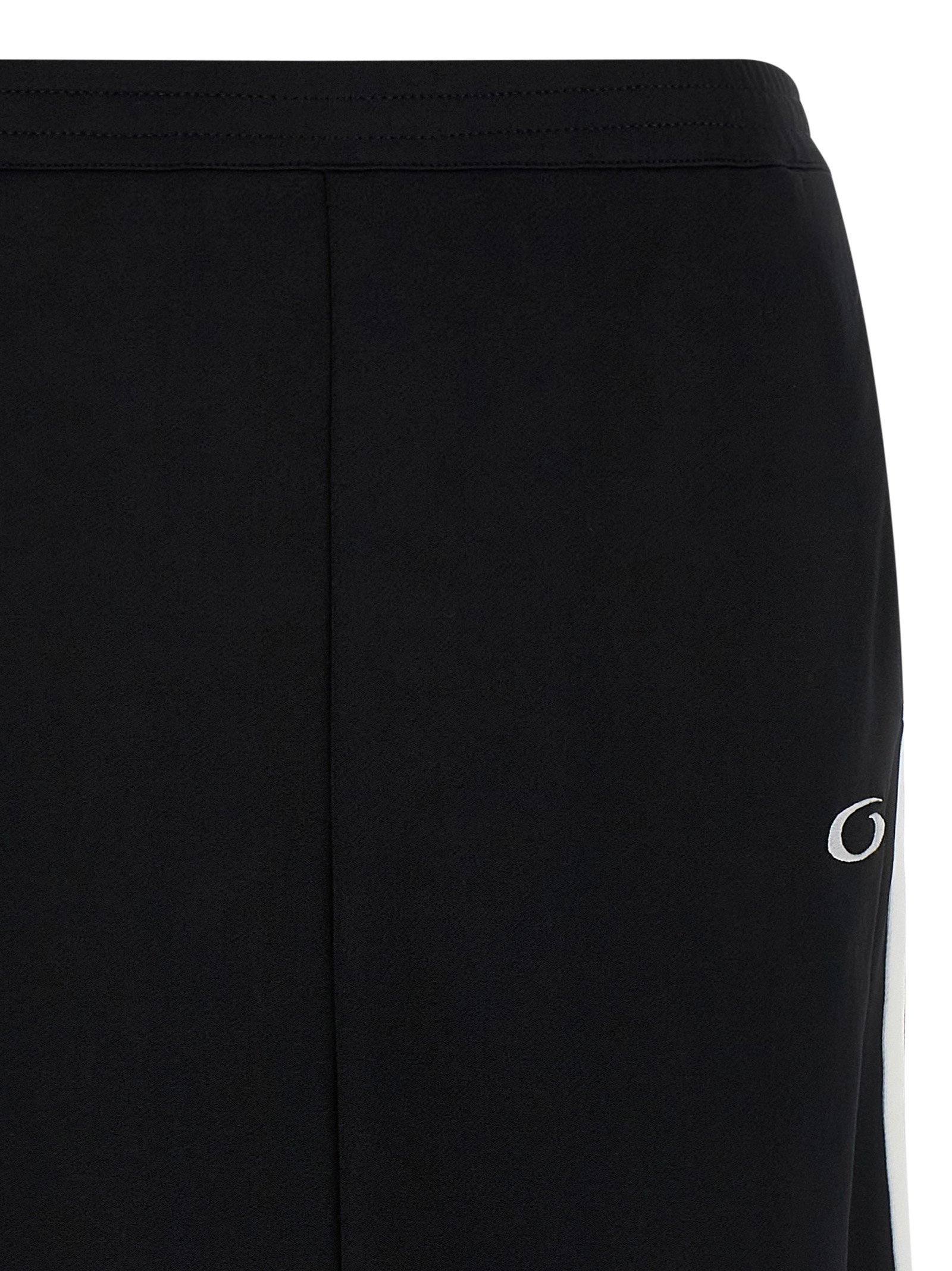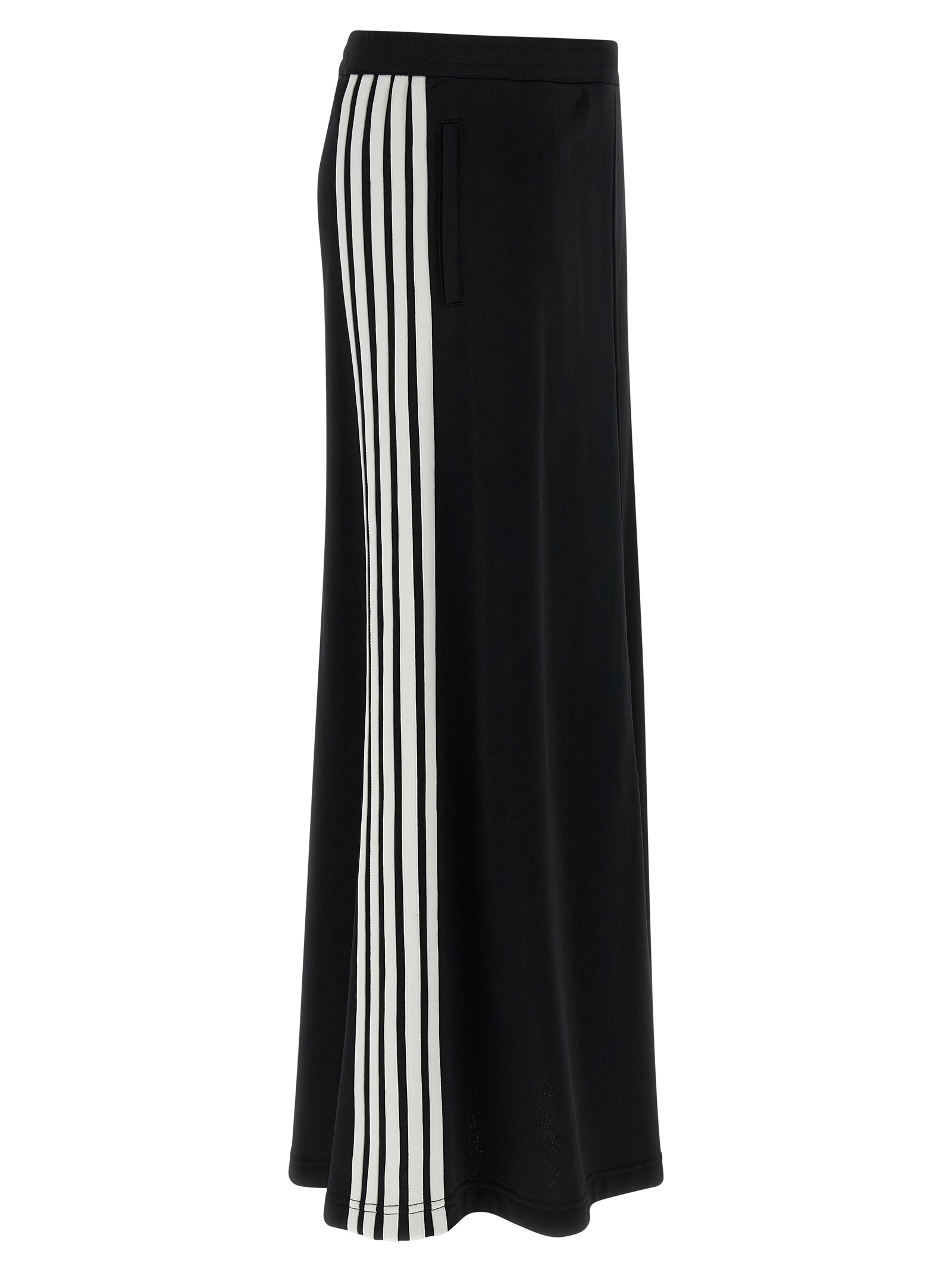 Maxi ‘Tracksuit’ skirt in synthetic fabric with contrasting side details, brushed cotton lining, front logo embroidery, adjustable drawstring elastic at the waist, pockets, flared design.
