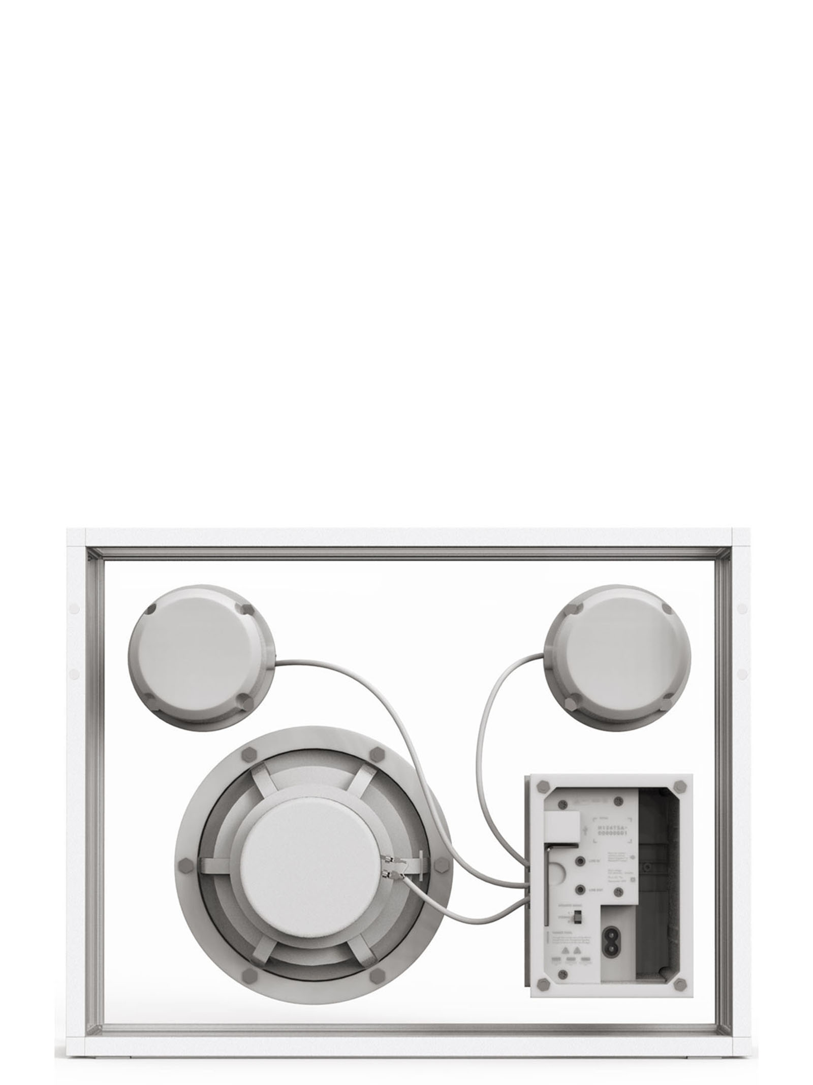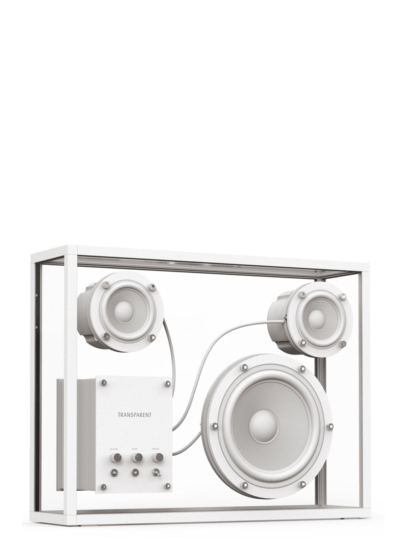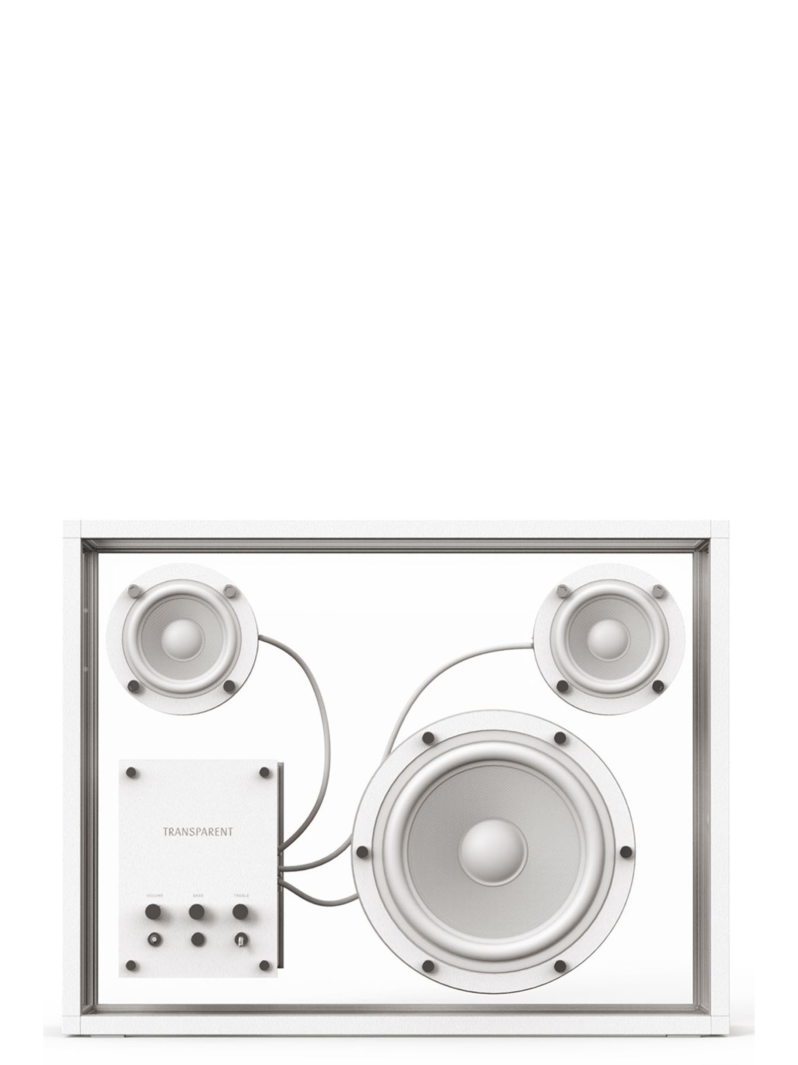 Transparent Speaker’ high-quality speaker with Bluetooth or cable option. Single or double use. You can pair two speakers (L/R) via Bluetooth or a cable. Compatible with our other speakers also. Includes optional wall-mount stirrups. Wireless: Bluetooth and stream with double “True Wireless” speaker Compatible with Apple AirPlay, Sonos, Amazon Echo, and Google Cast Upgrade: May accommodate a third-party voice control module, multiroom, or third-party Wi-Fi inside. Wires: 2 audio cable (long and short), 2 power supply wires (mains and USB) Wall mount: stirrups and screws included White gloves Manual L/R driver: 2 ร 3” (Full Range) Woofer: 1 ร 6.5” Amplifier: Class D integrated (Active) Nominal power: 100-120W Locked cabinet volume: 10.2 l Frequency Response: 35 Hz – 20 kHz ยฑ5dB High-quality digital signal processing (DSP) Front controls: Volume, Bass and Treble Input Line: 2 x 3.5 mm (front and back) USB power supply output A back socket