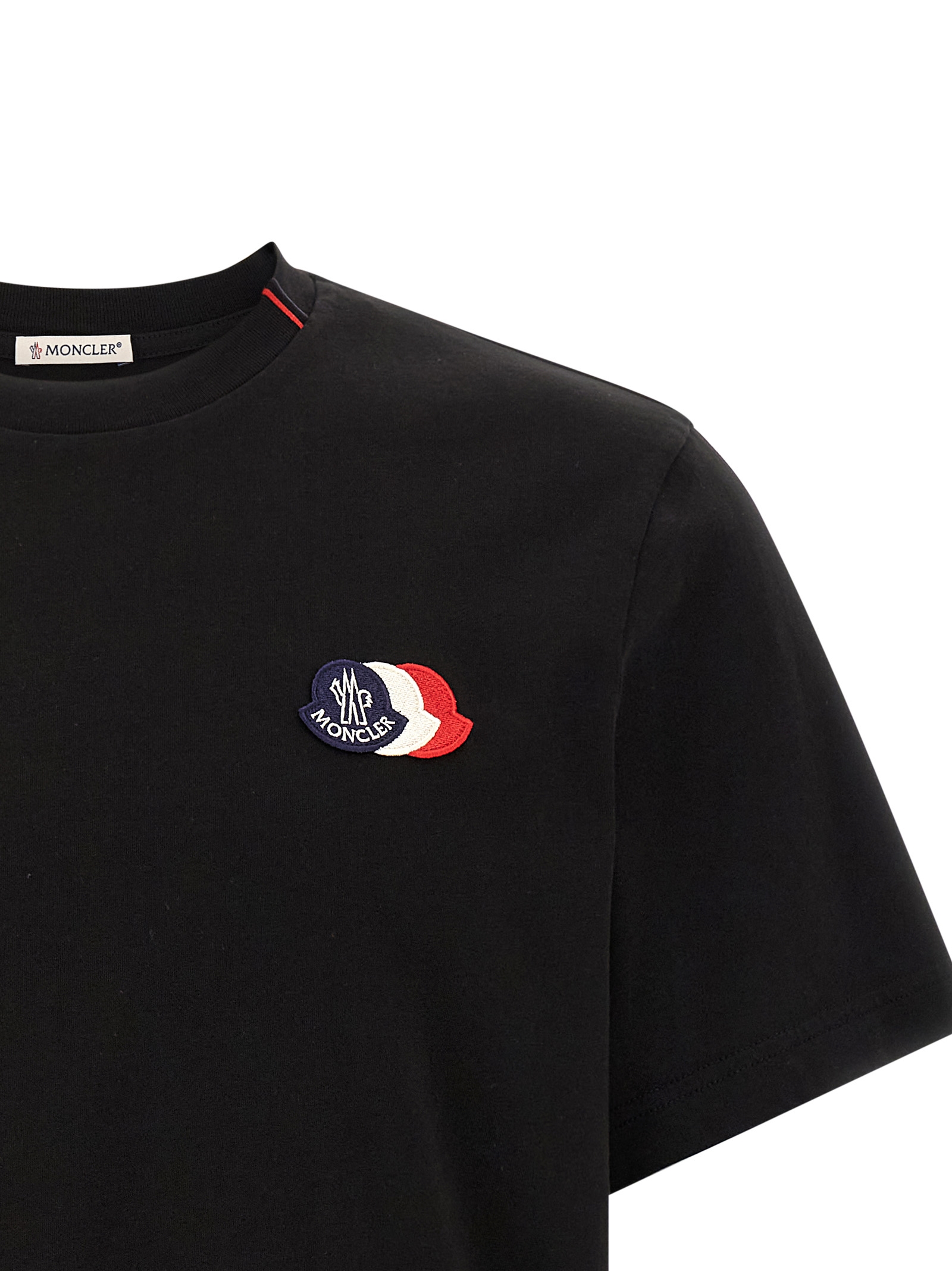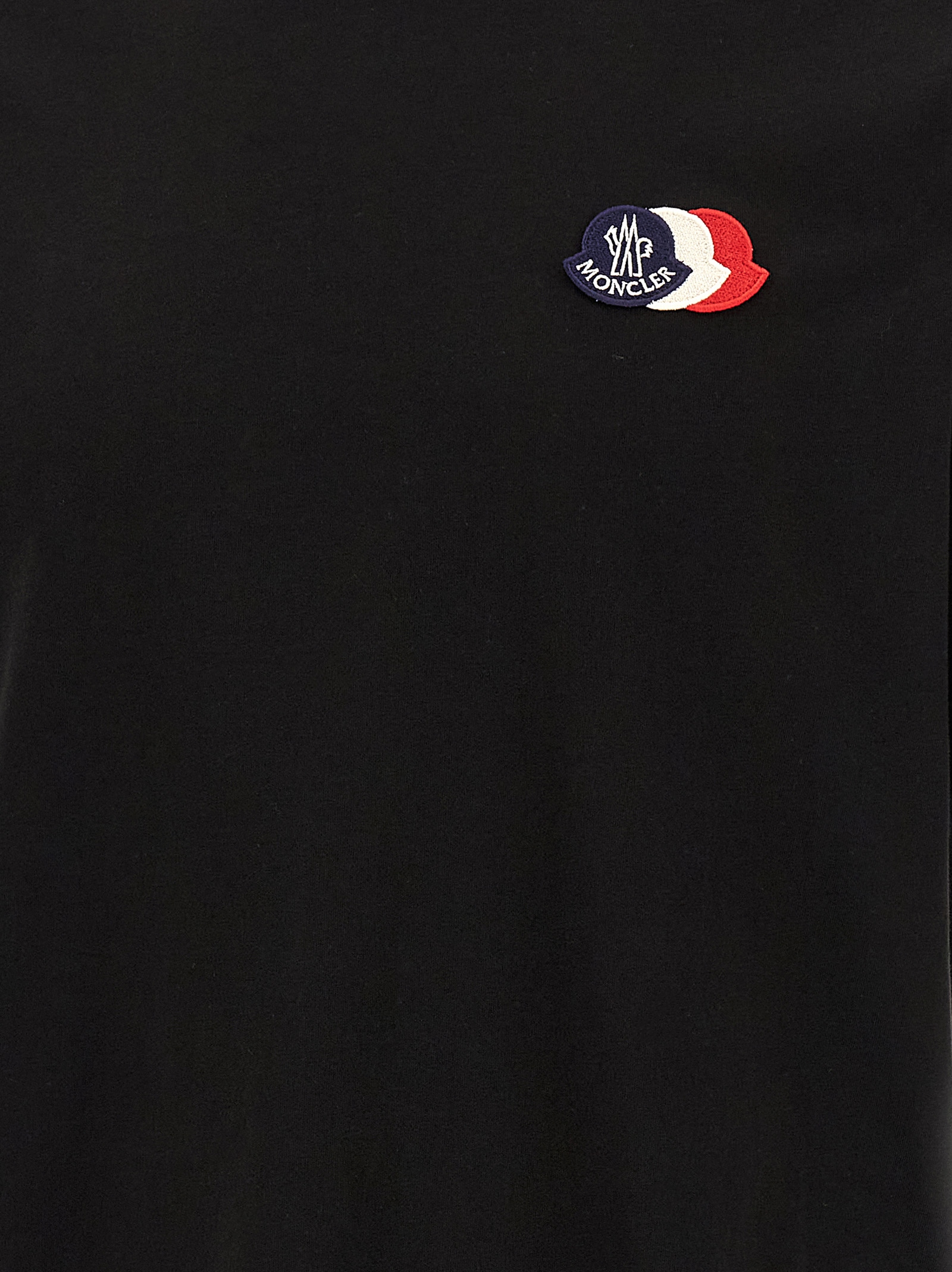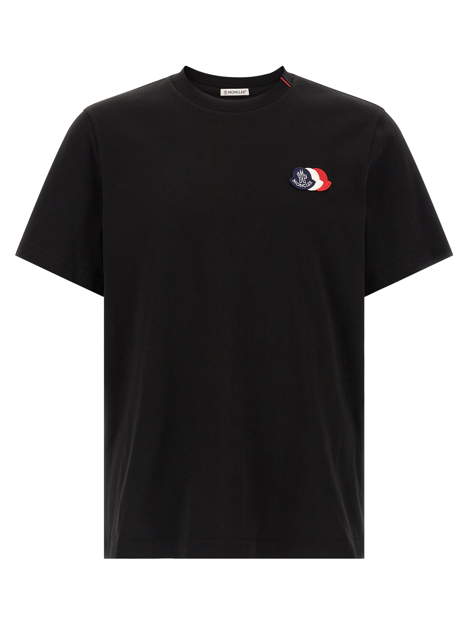 Pima cotton jersey T-shirt, front tricolor logo patch, crew neck with tricolor embroidery, short sleeves.
