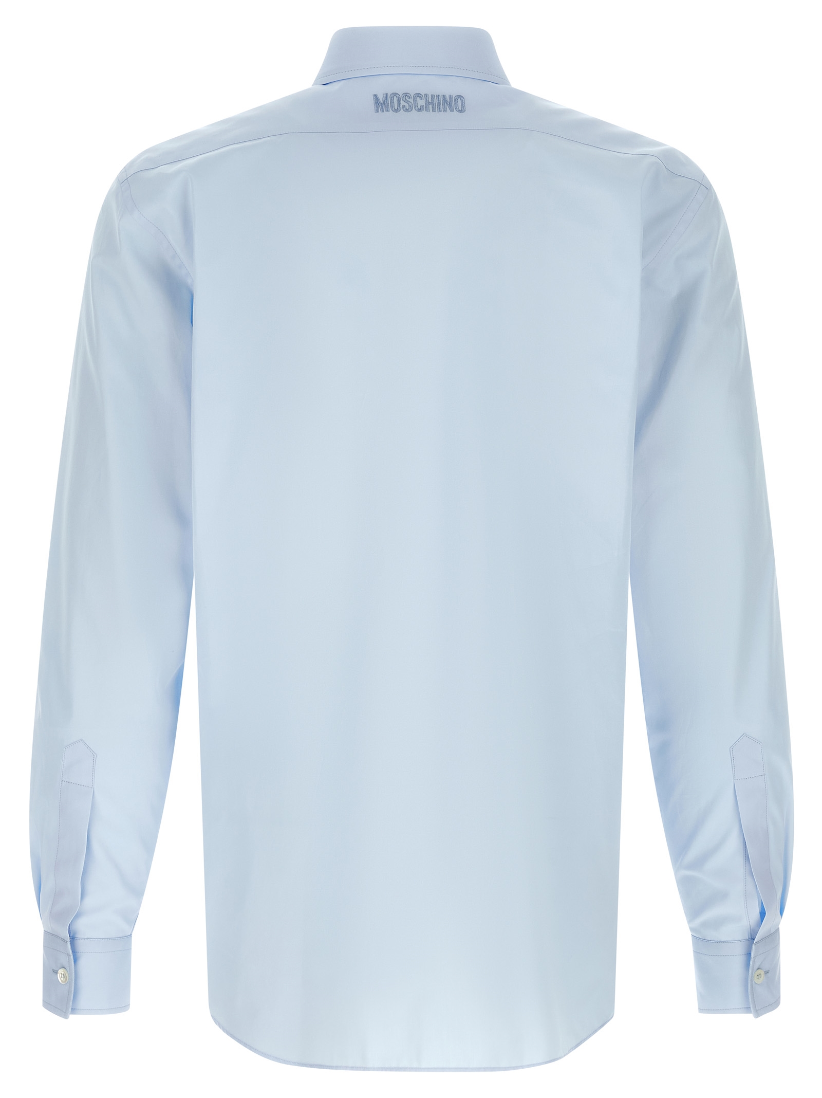 Cotton poplin shirt, pocket with print in the shape of trompe-l’œil-effect glasses, front button closure, back logo embroidery, long cuffed sleeves.