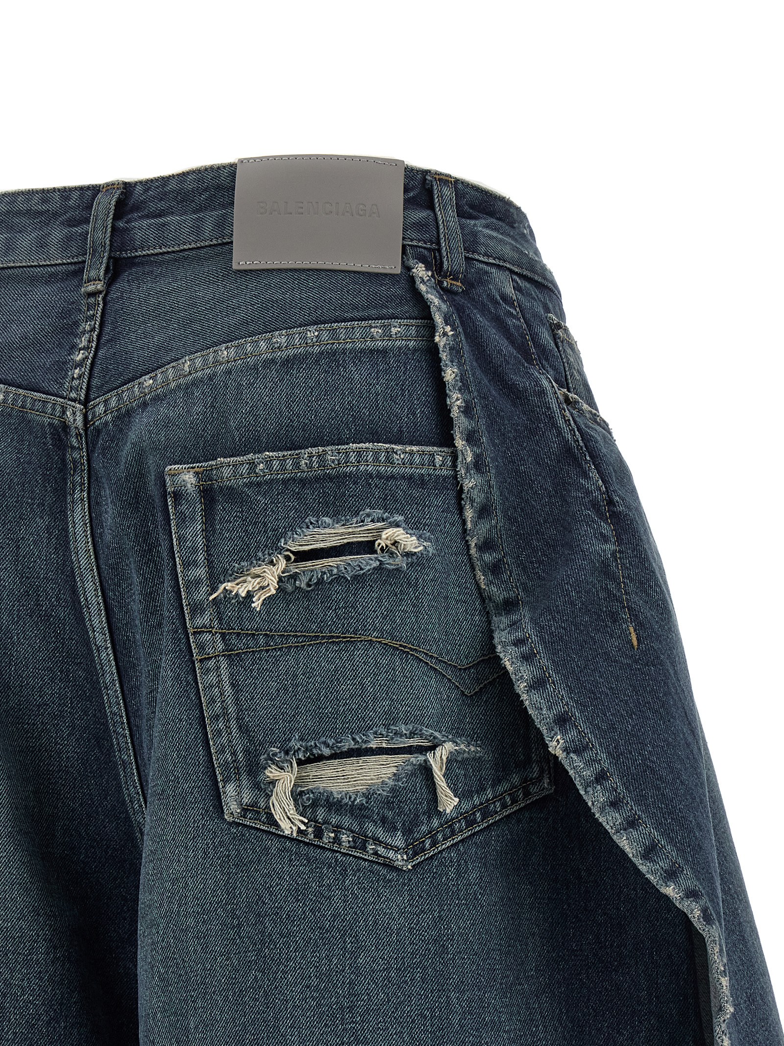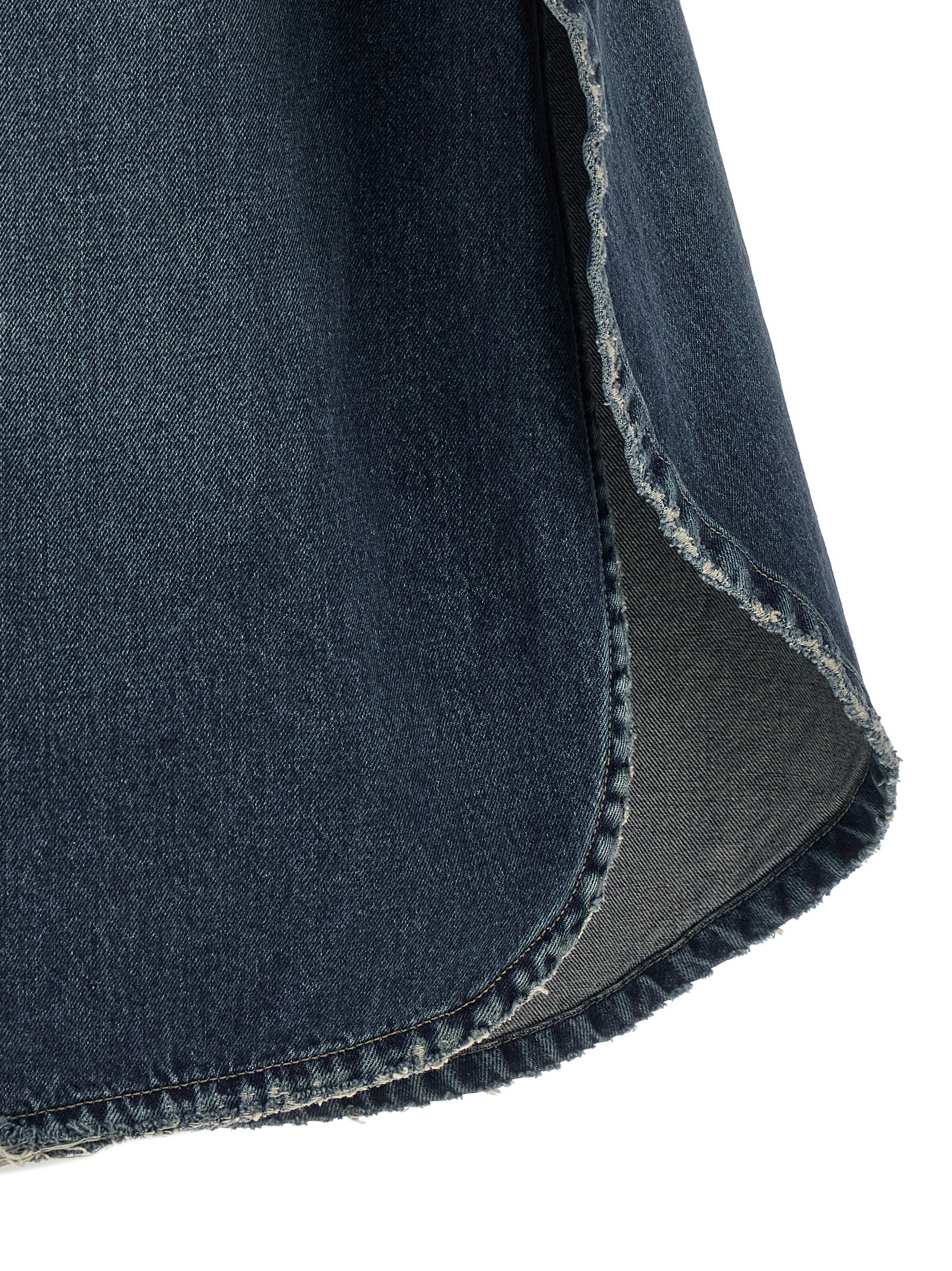 Used-effect stone washed cotton denim bermuda shorts with back rips, ‘Tulipano’ leg construction with panels and side splits, contrast stitching, regular waist, wide flared leg, front zip and button closure, five pockets, asymmetrical leg bottoms, leather logo tag with embossed logo on the back.