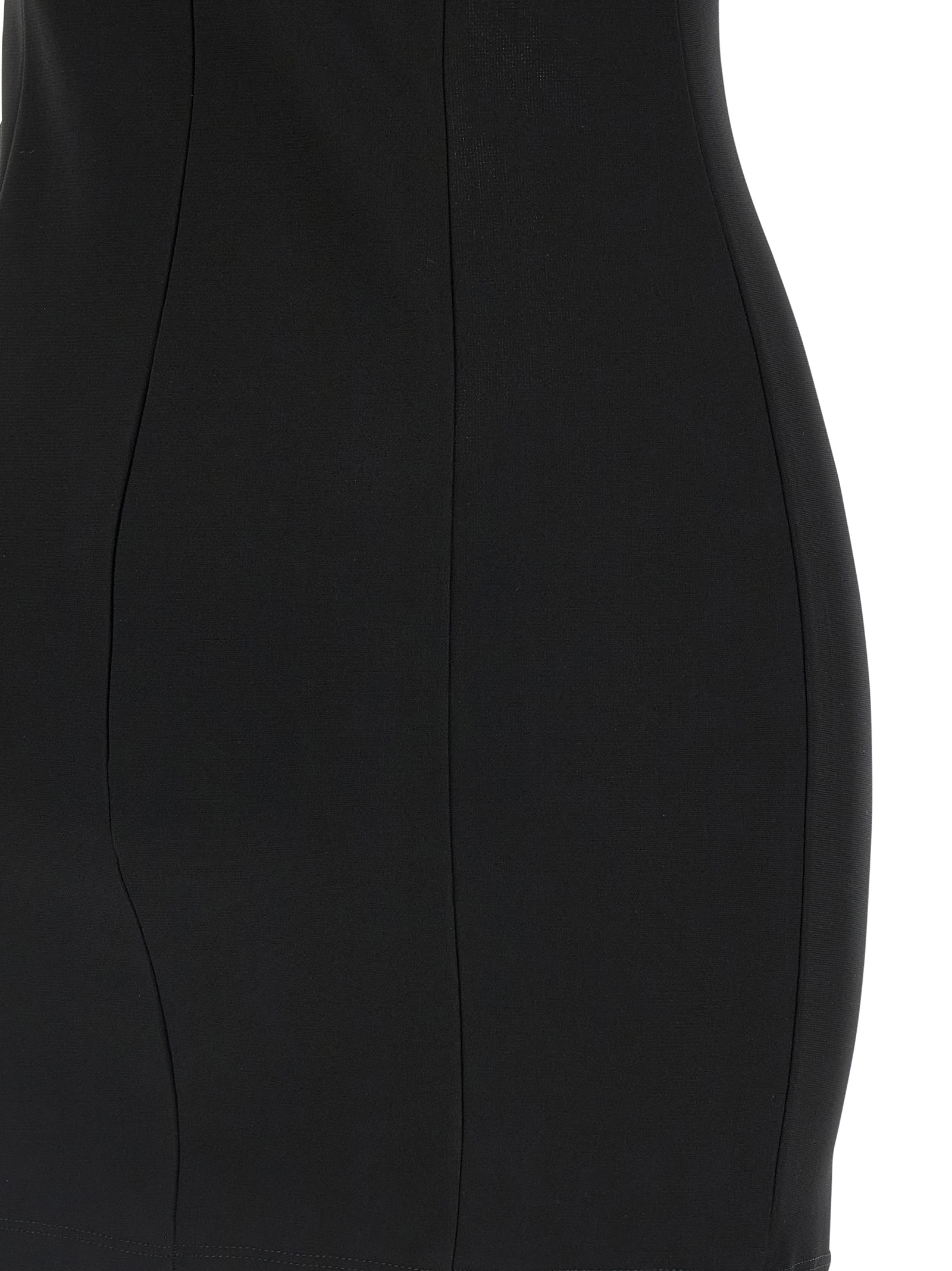Sleeveless stretch viscose minidress with asymmetric tulle insert on the front and back, crewneck, button closure with cut-out teardrop detail and back zip.