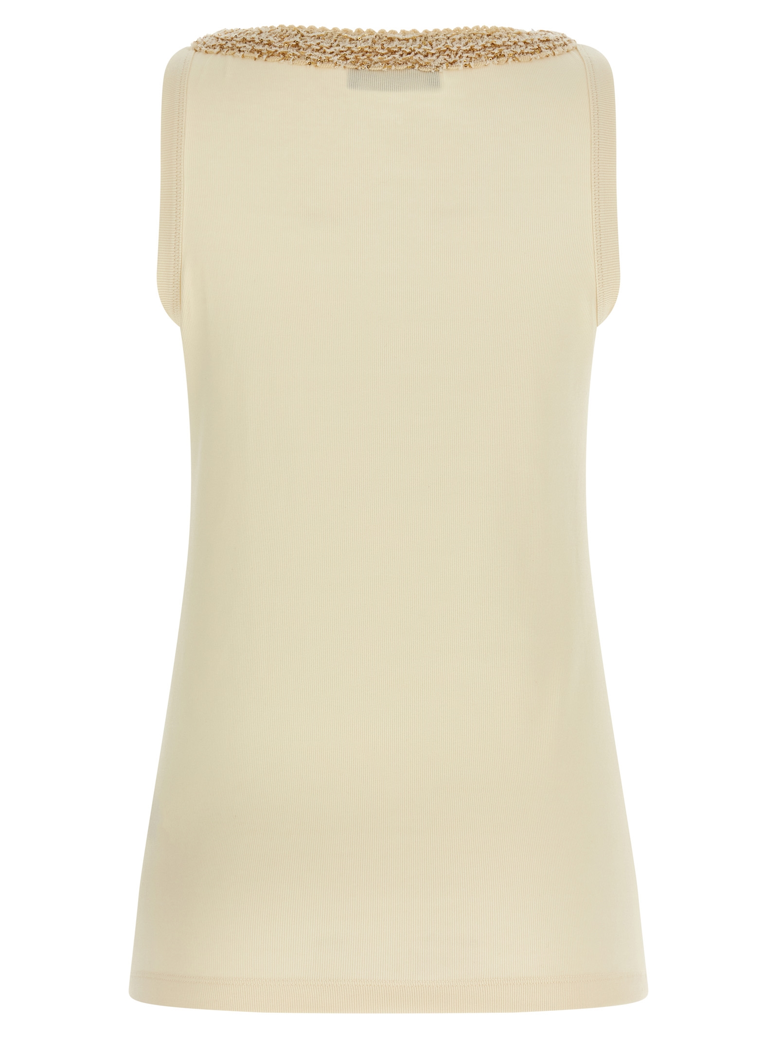 Ribbed cotton jersey top with wide round neckline with sequin denim-effect tweed piping.
