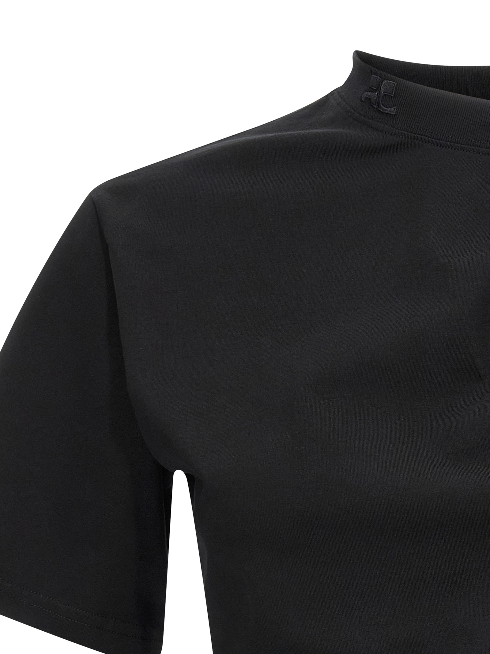 ‘Twist Asymmetrical’ cotton crew neck t-shirt with tone-on-tone front logo patch, one-shoulder style with short sleeves and twisted detail.