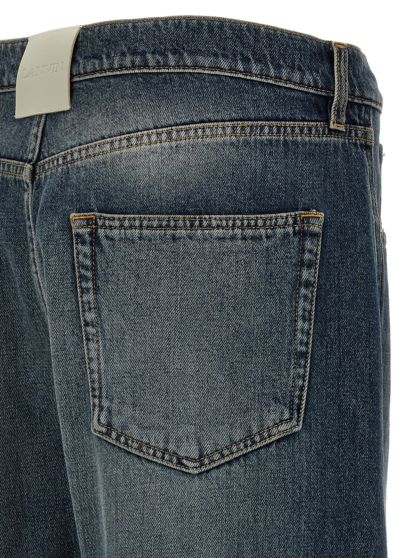‘Twisted Leg’ cotton denim jeans with button closure, five pockets, leather logo tag.