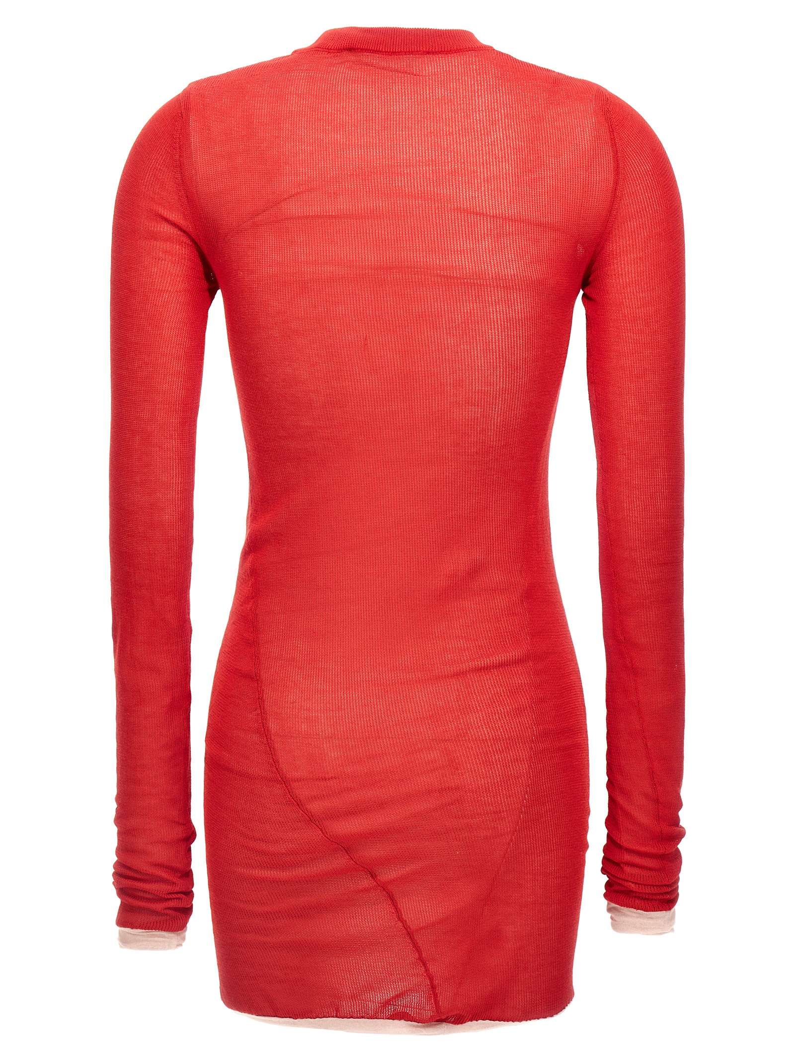 Two-material two-material knit mini dress, crew neck, long sleeves, tone-on-tone logo embroidery on the front.