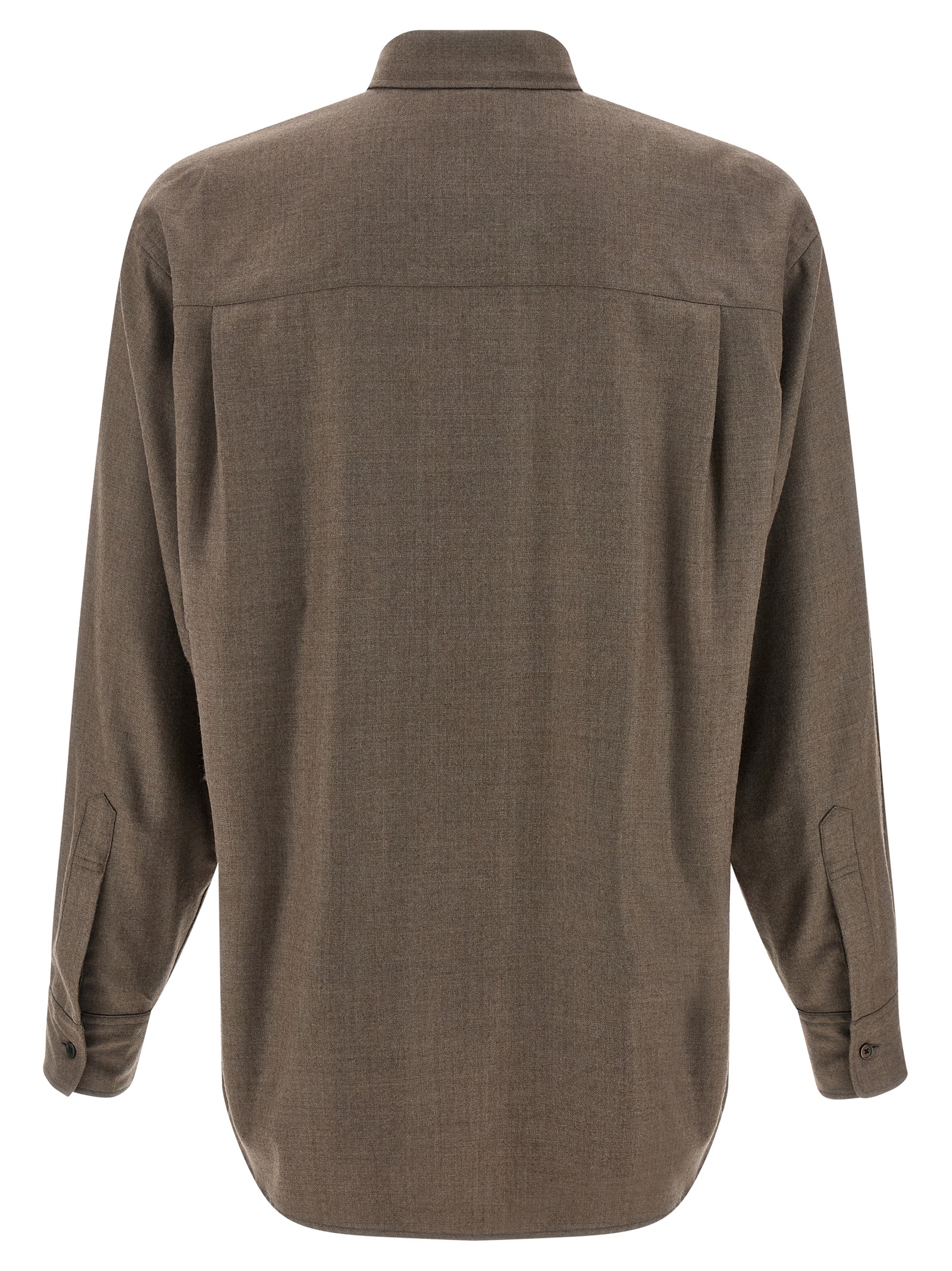 Ultra-fine wool velvet shirt with front button closure, long cuffed sleeves and dropped shoulders.