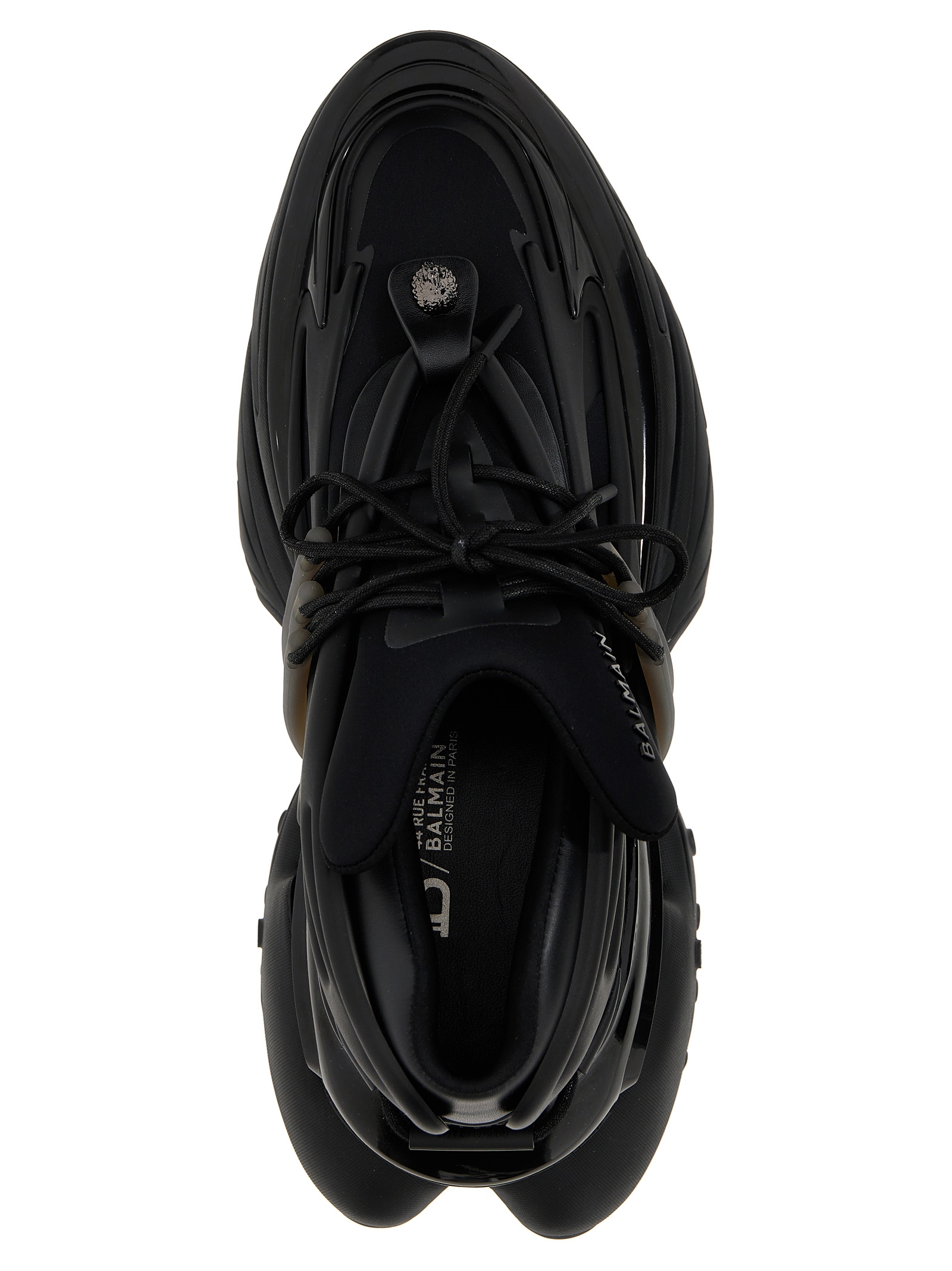 Unicorn’ neoprene, rubber and leather sneakers with lacing and a rubber sole.