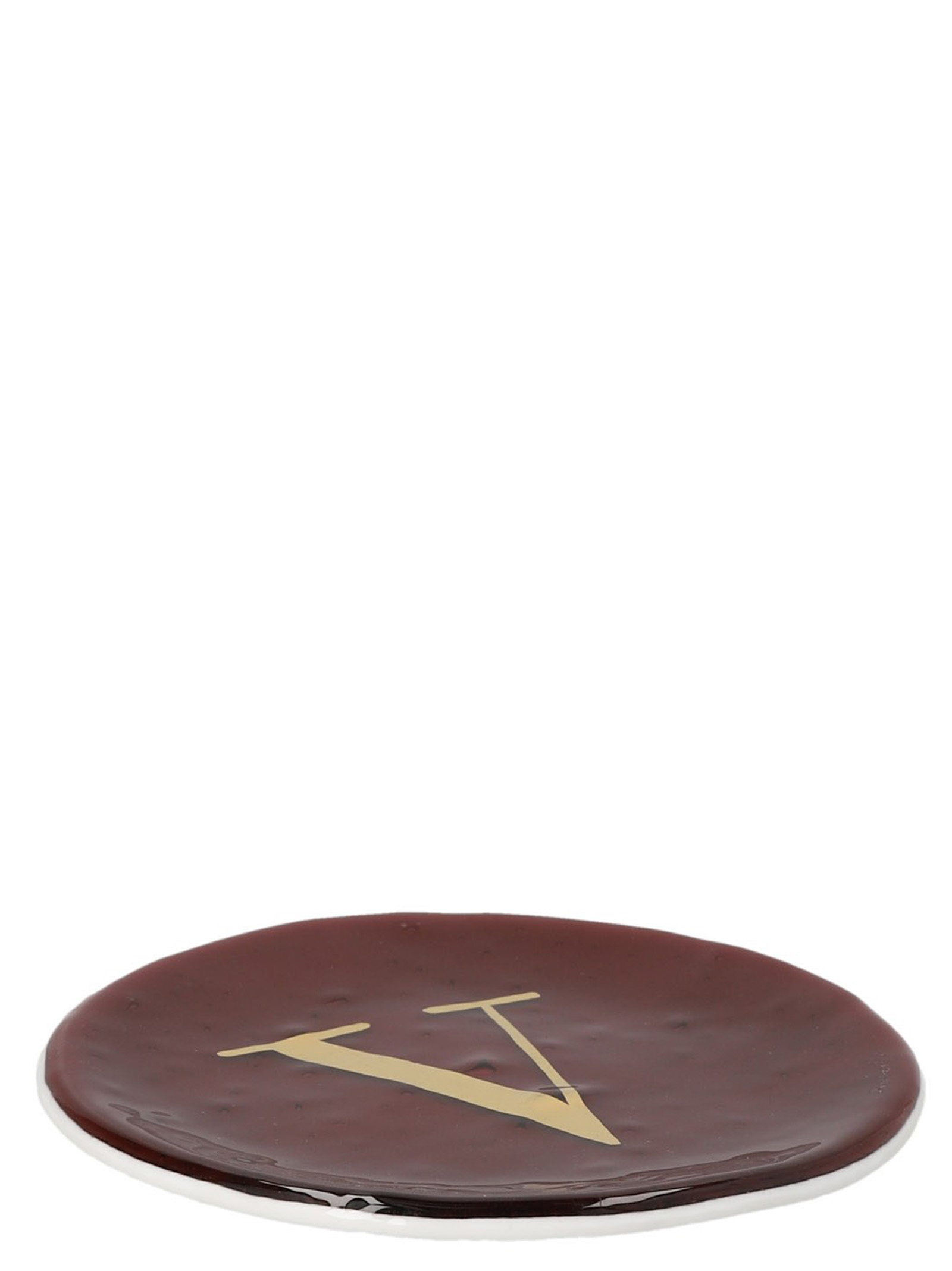 Glass side plate with hand-painted letter ‘V’ in mint gold.