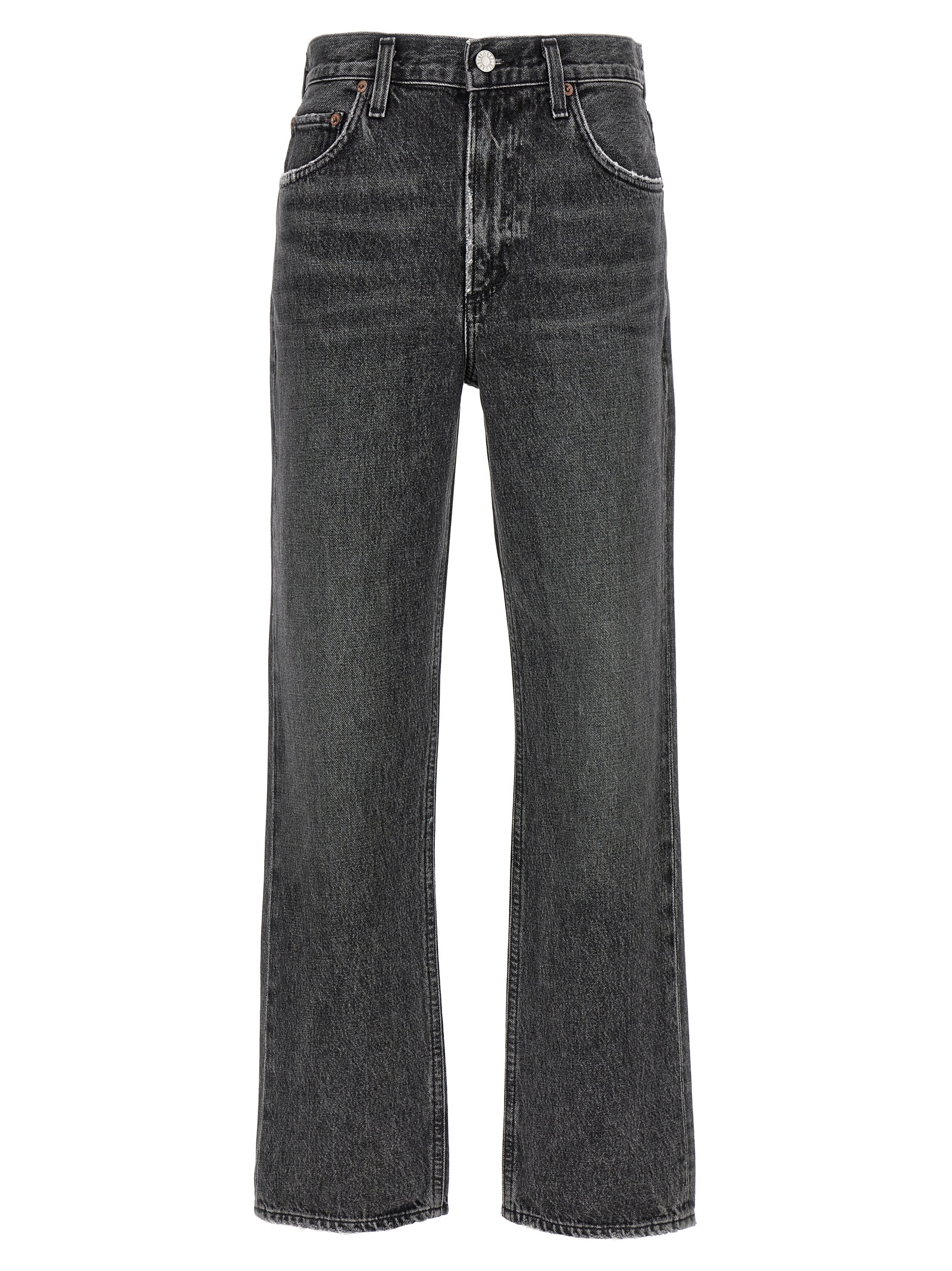 ‘Valen’ cotton denim jeans with used-effect details, zip and button closure, five pockets, mid-rise model with straight leg.