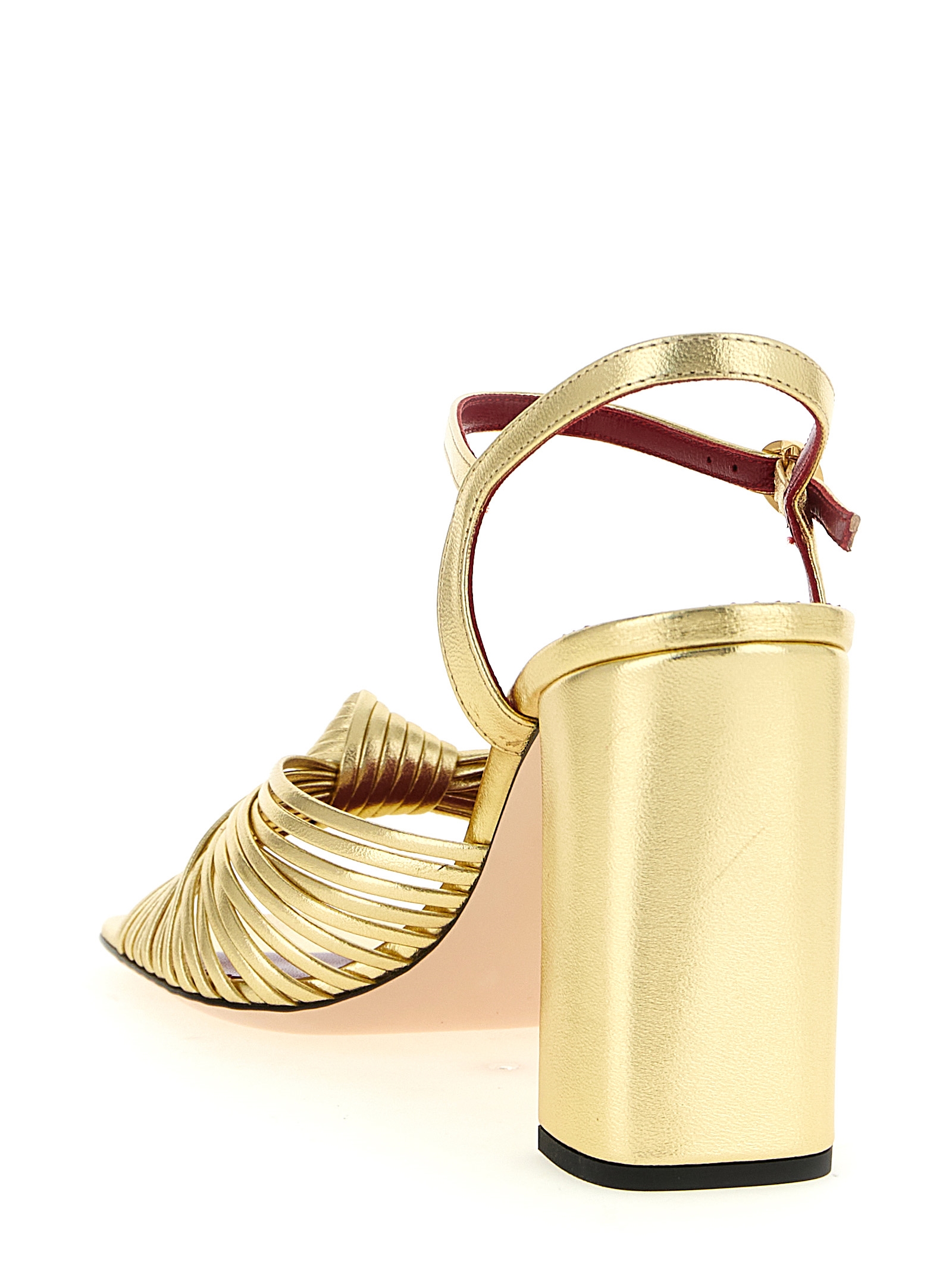 ‘Annet’ sandals in laminated nappa leather, knot detail with front mignon, adjustable ankle strap, wide leather wrapped heel with antiqued brass finish ‘VLogo Signature’ applied on the side, leather sole.