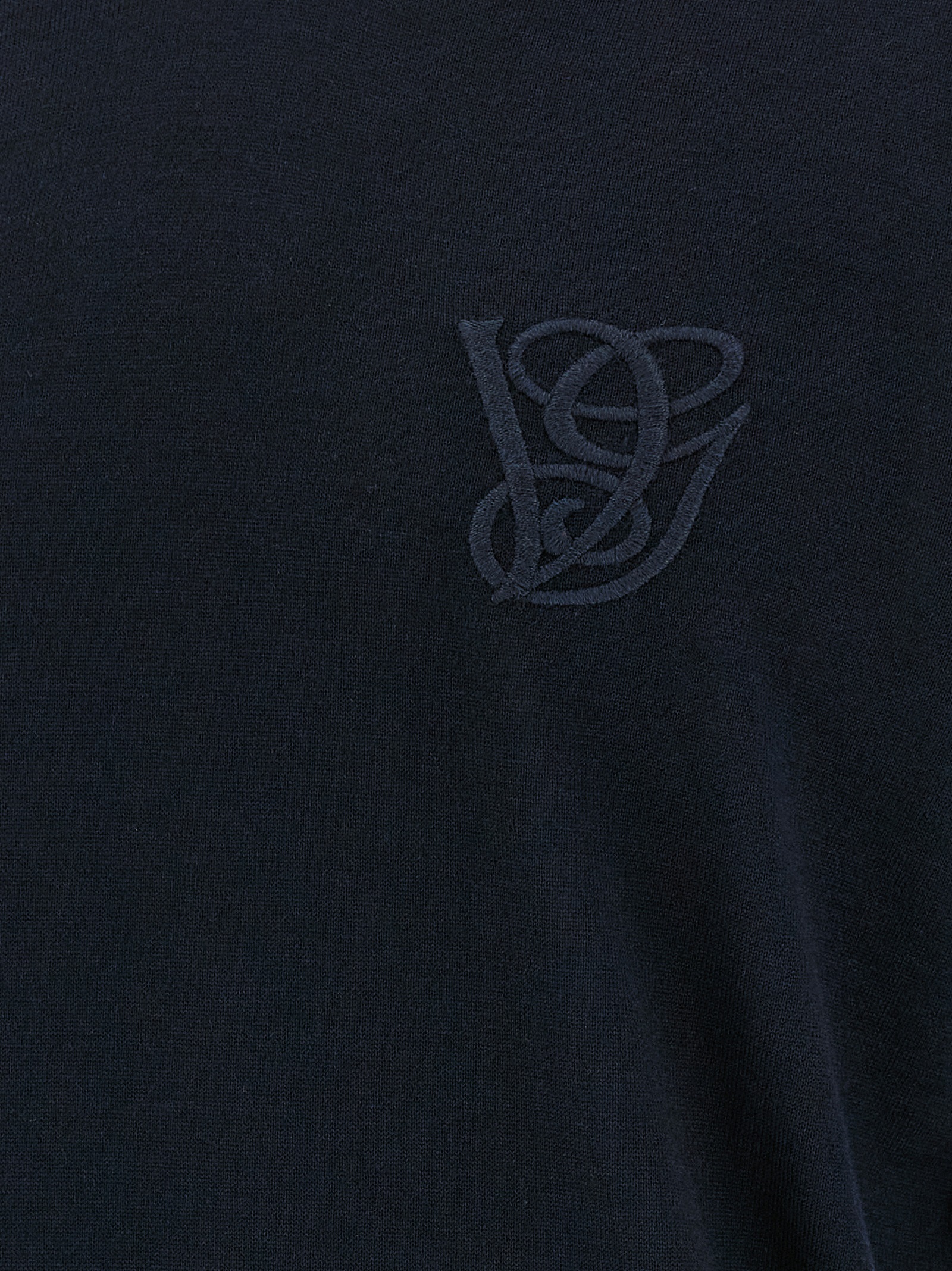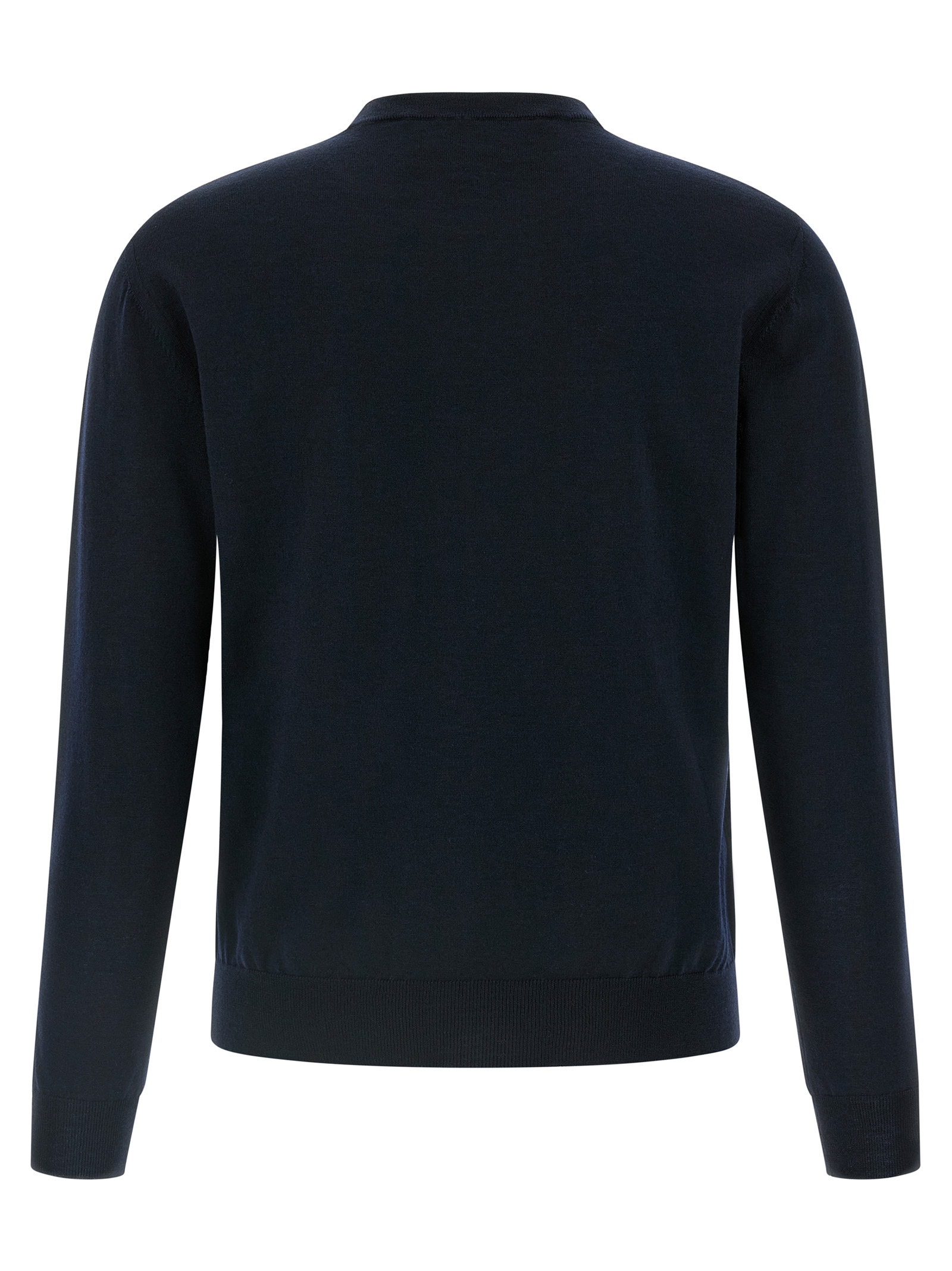 Light wool sweater with tone-on-tone logo embroidery on the front, crew neck, long cuffed sleeves.