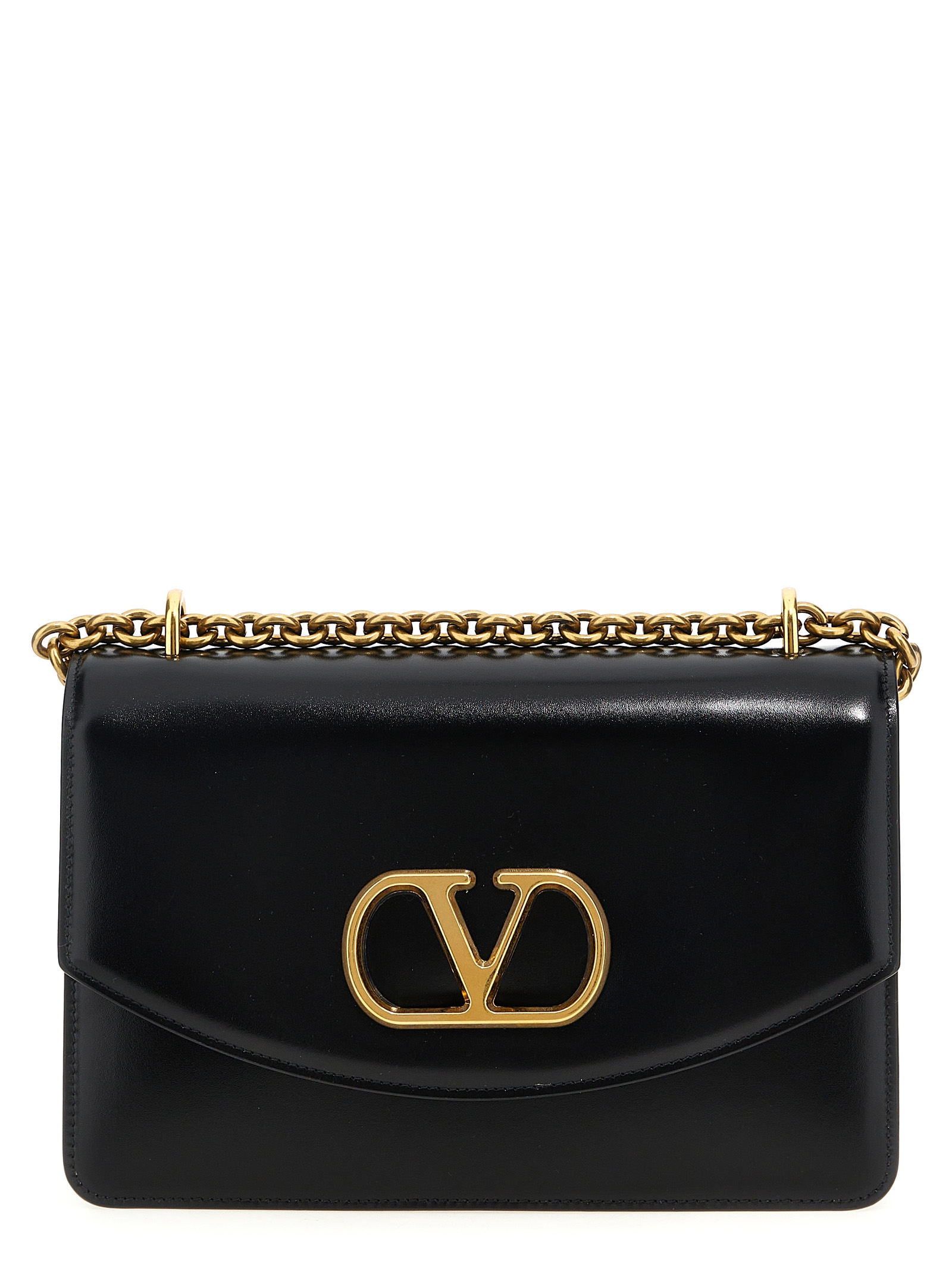 ‘Vain’ shoulder bag in shiny calf leather, magnetic flap closure with cut-out antique effect metallic VLogo Signature detail, sliding chain shoulder strap, nappa lining.
