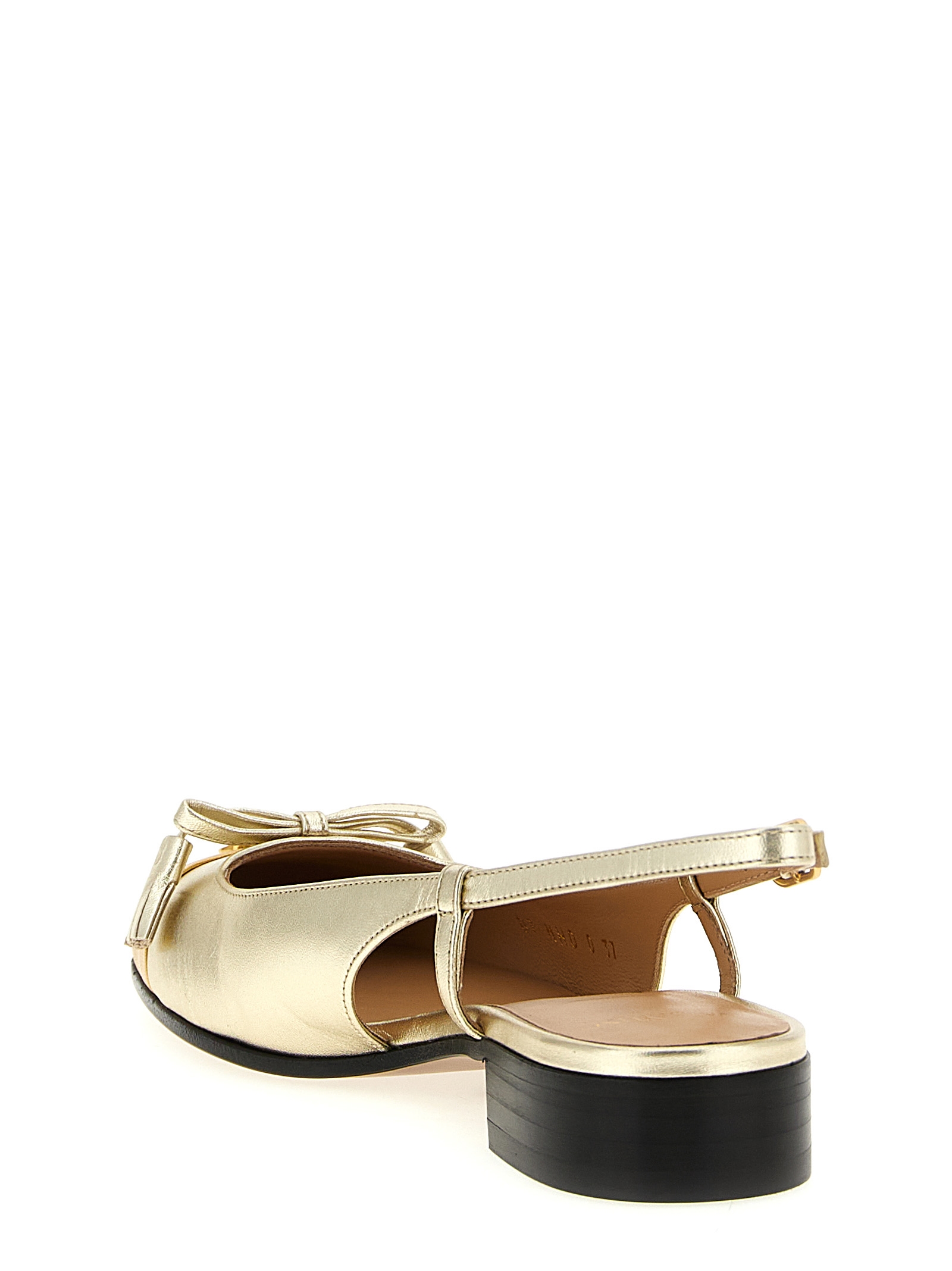 ‘Valet Du Roi’ two-tone laminated leather slingback, antiqued effect metallic VLogo Signature with bow with front tassels, square toe model, adjustable strap, leather sole.
