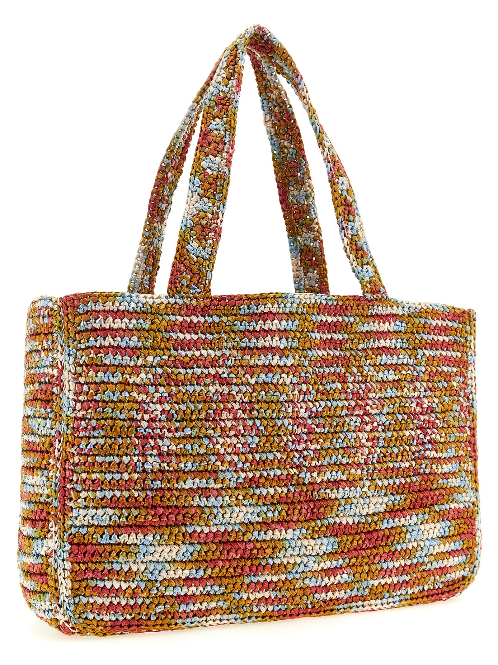 Large ‘Viva Superstar’ shopping bag in multicolor synthetic raffia, crochet processing with contrast maxi VLogo Signature on the front, double fixed handle.