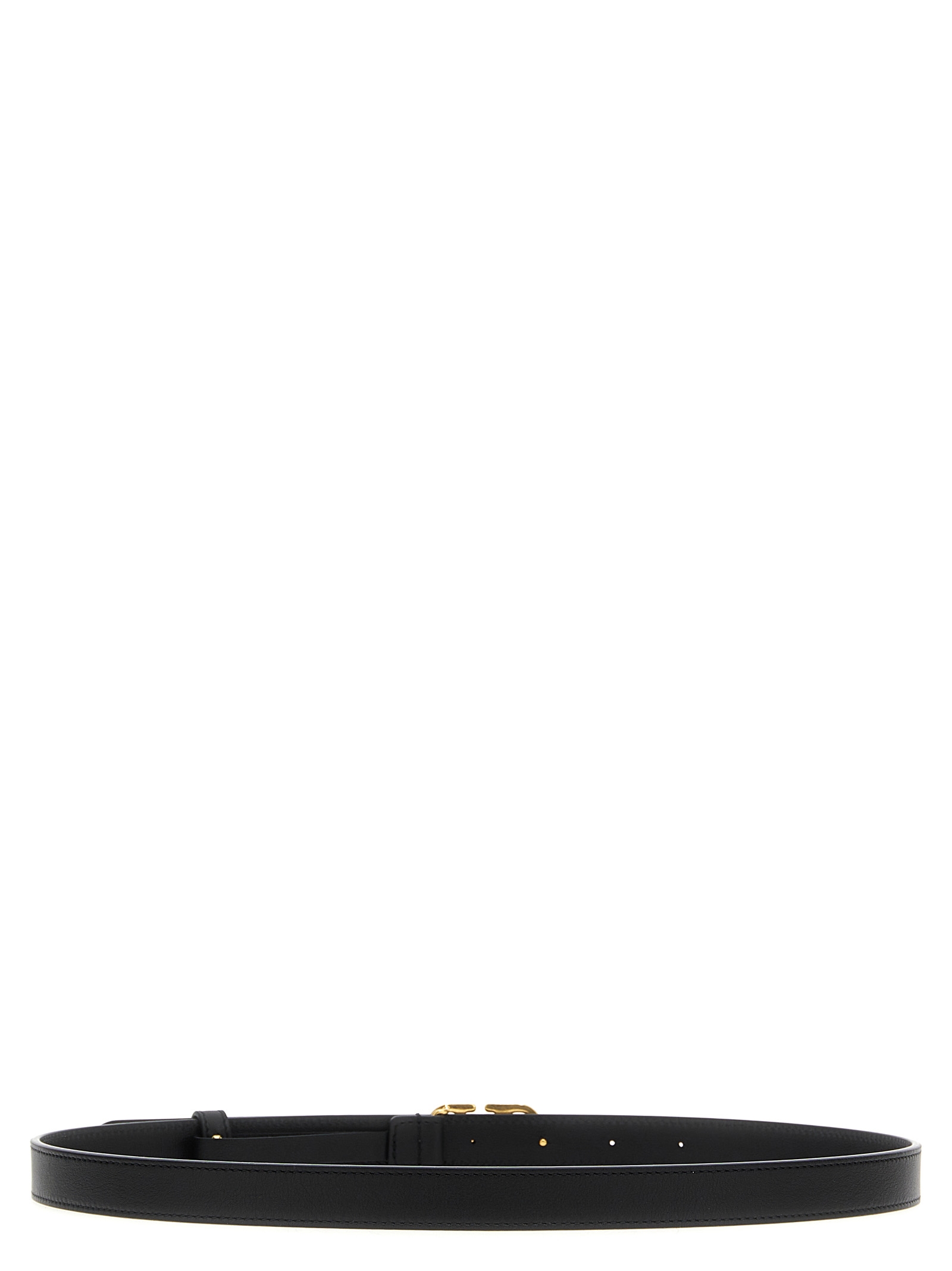 Leather belt with antiqued gold metal ‘VLogo Signature’ buckle.