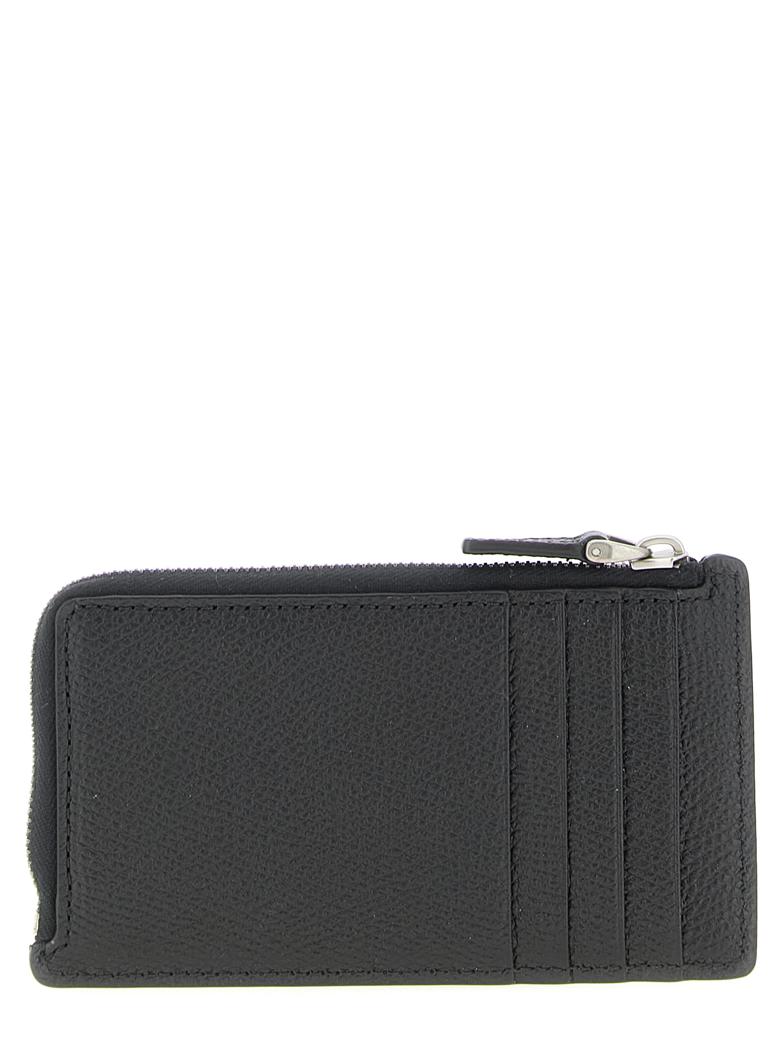 Garnet calf leather coin purse, front metal VLogo Signature pocket, top zip closure, back card slots.