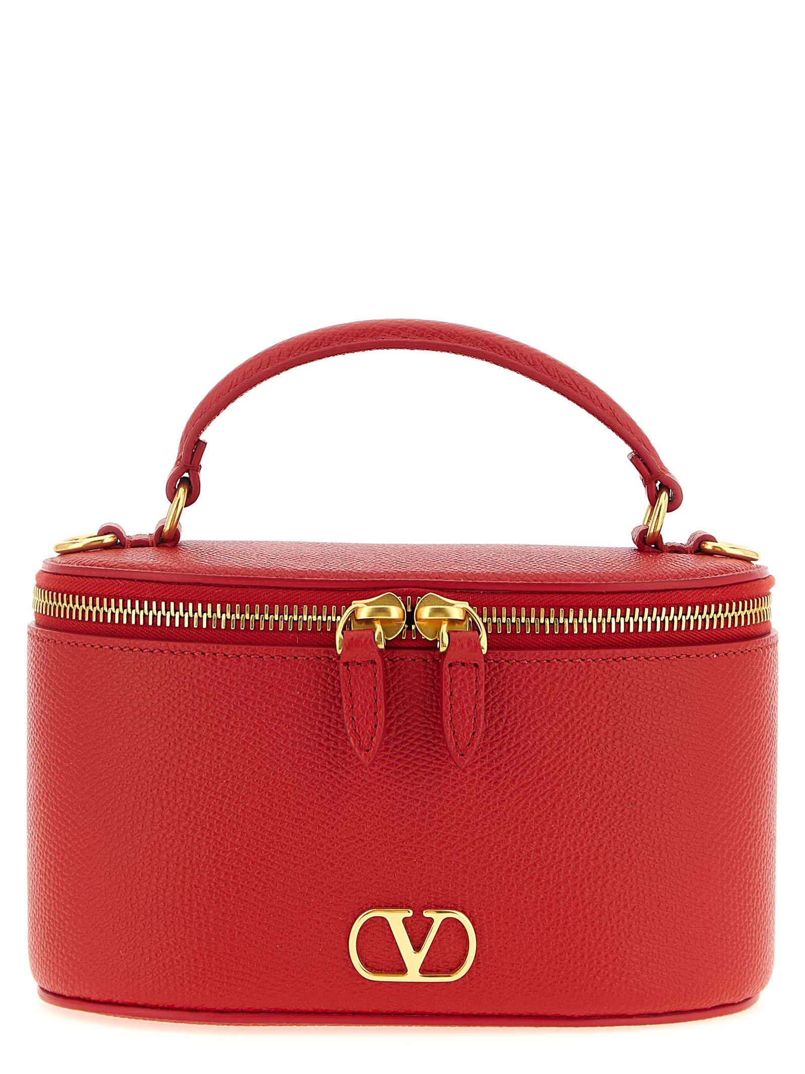 Vanity mini crossbody bag in garnet calf leather, metallic Vlogo Signature logo with antiqued effect on the front, fixed handle, zip closure, hard bottom, nappa lining, adjustable and removable shoulder strap.