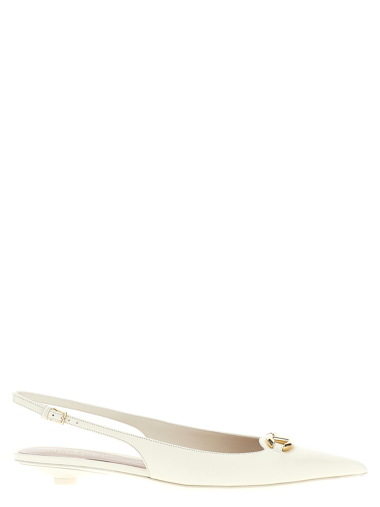 Leather slingback shoes with gold metal ‘VLogo The Bold Edition’ appliqué on the front, adjustable strap.
