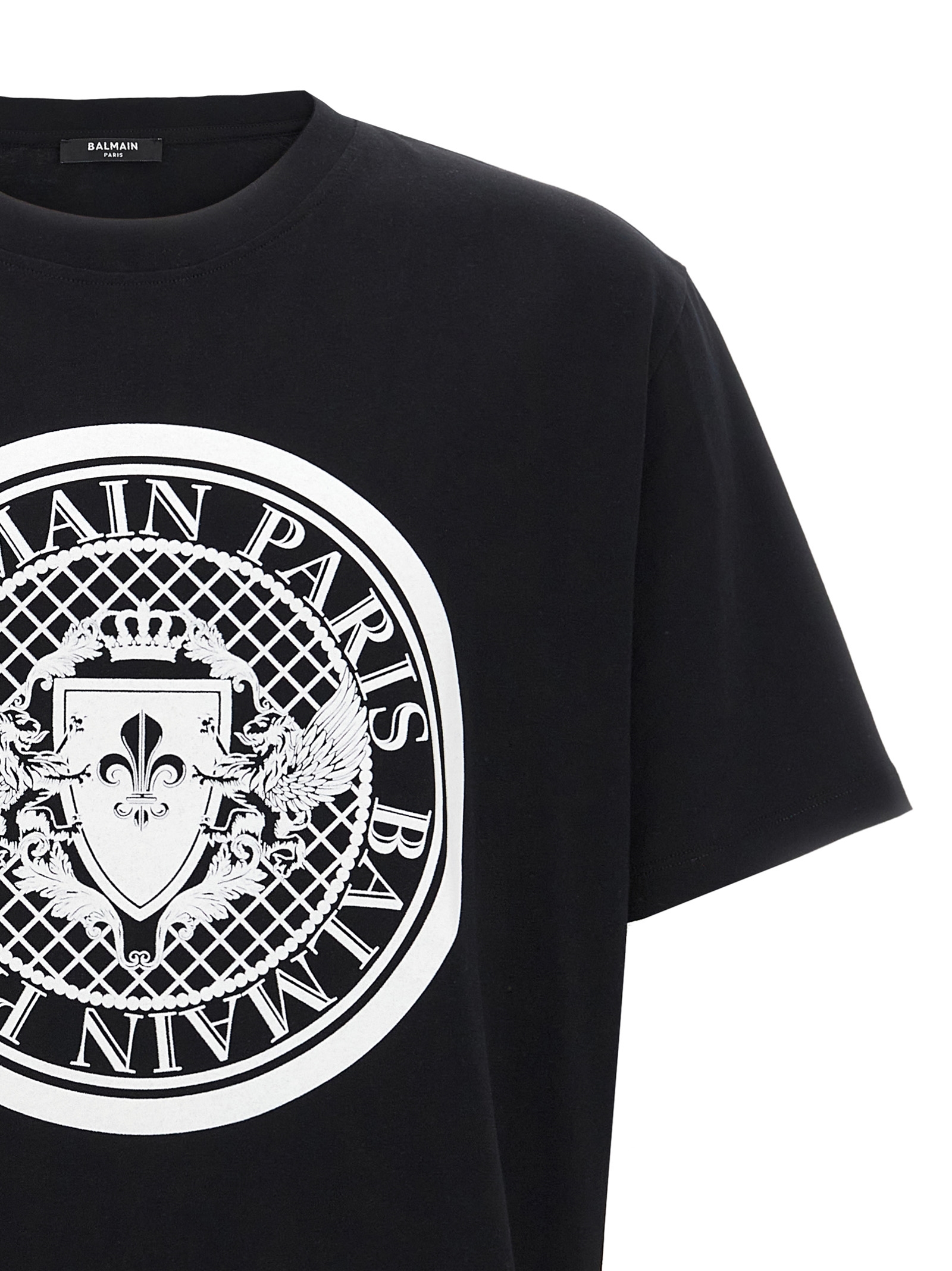 Cotton T-shirt, embossed velvet logo on the front, crew neck, short sleeves.