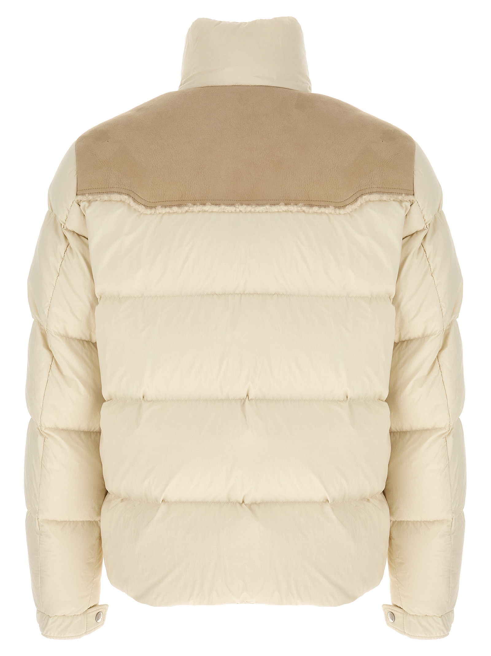 ‘Verine’ down jacket in micro soft quilted nylon with goose down padding, suede yoke with long-haired sheepskin trim, standing collar, zip closure and front snap buttons, pockets, long sleeves with adjustable elastic cuffs and felt logo patch, drawstring on the hem.