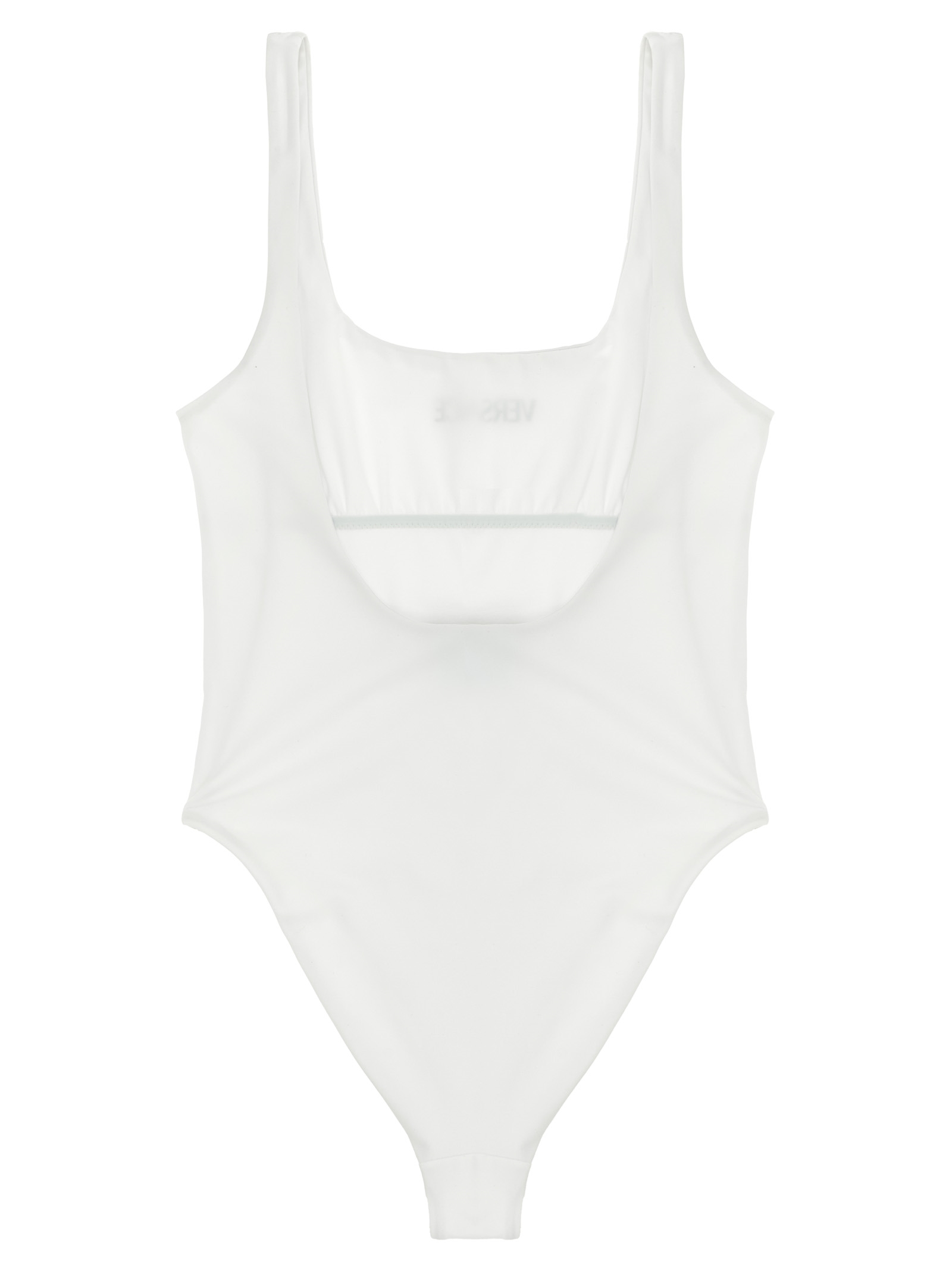 Lycra one-piece swimsuit, rubber ‘Versace Logo’ at the front, round neckline at the front, wide round neckline at the back.