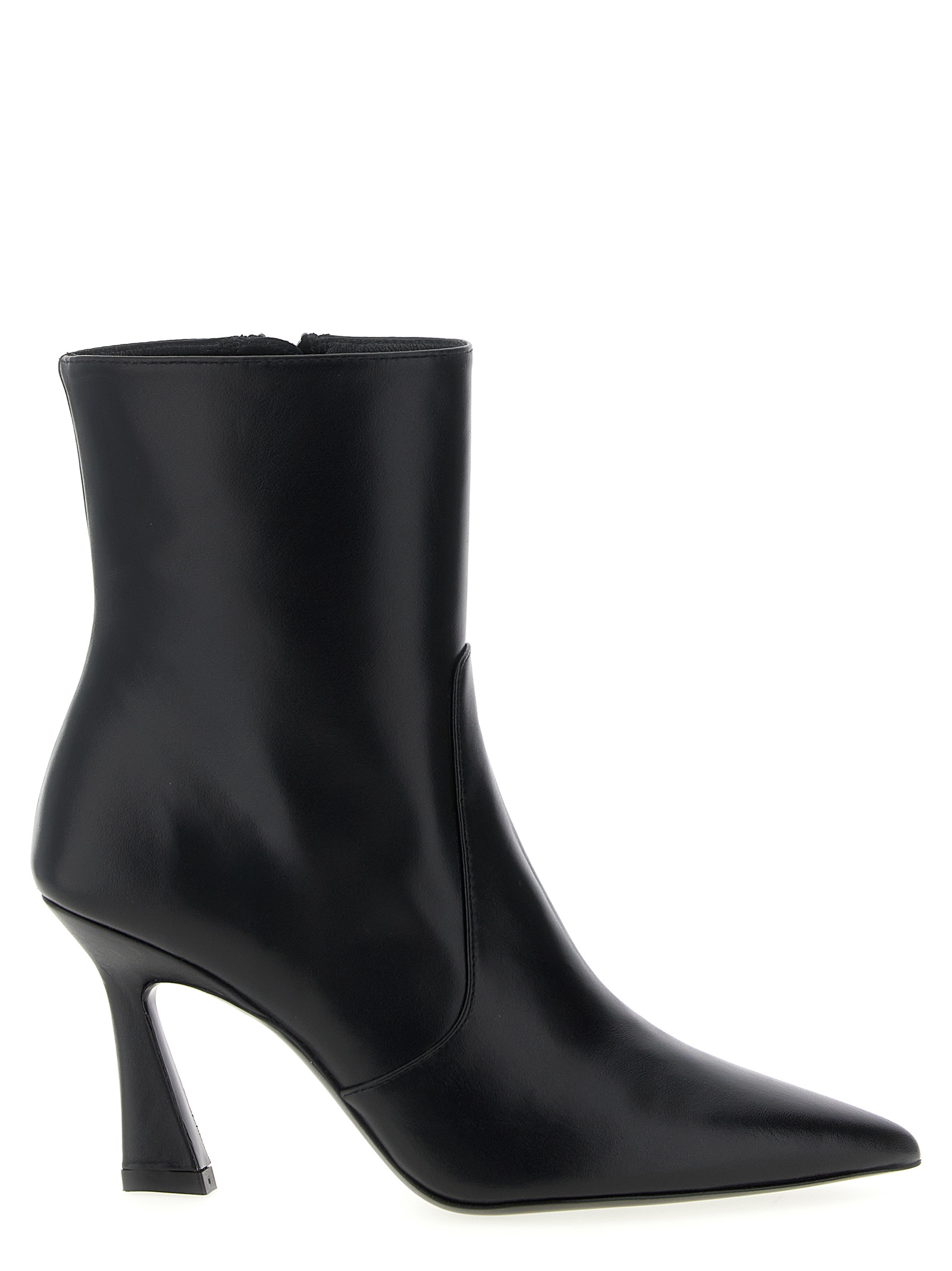 ‘Vinnie’ leather ankle boots, pointed toe, side zip closure, sculptural heel, leather sole.