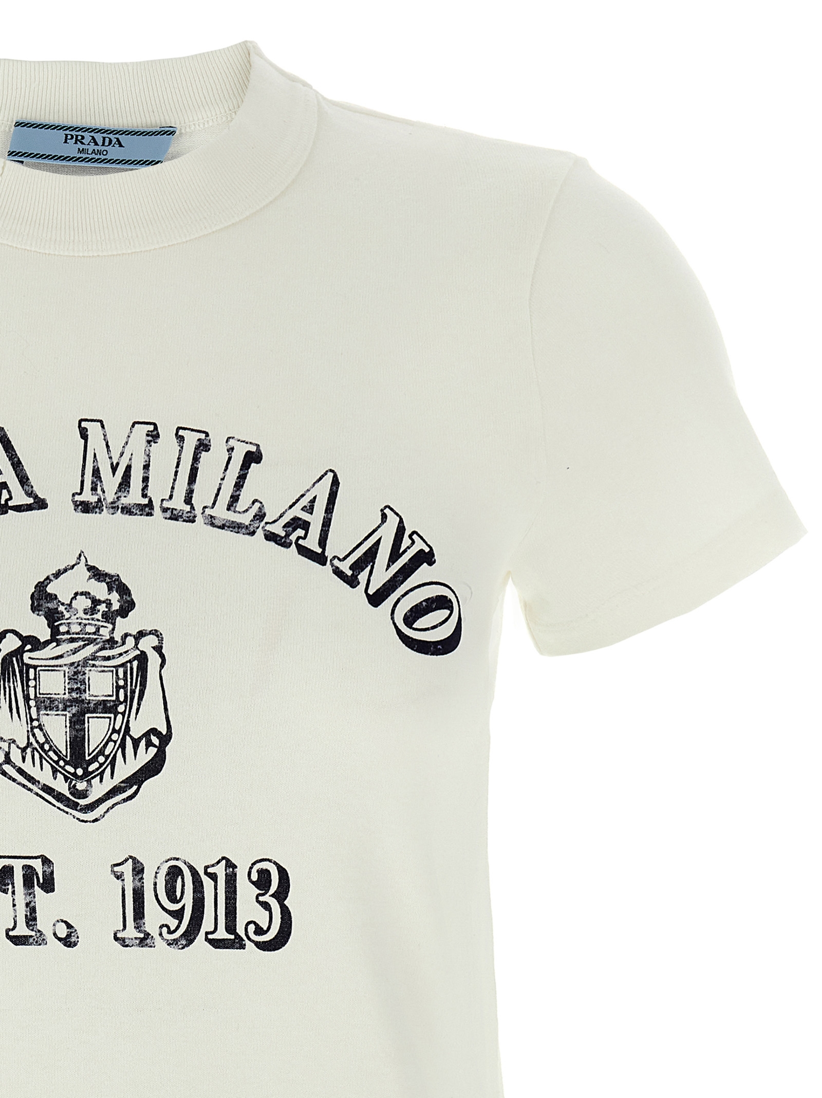 Used-effect cotton T-shirt with vintage logo print on the front, triangle logo crochet on the back, crew neck, and short sleeves.