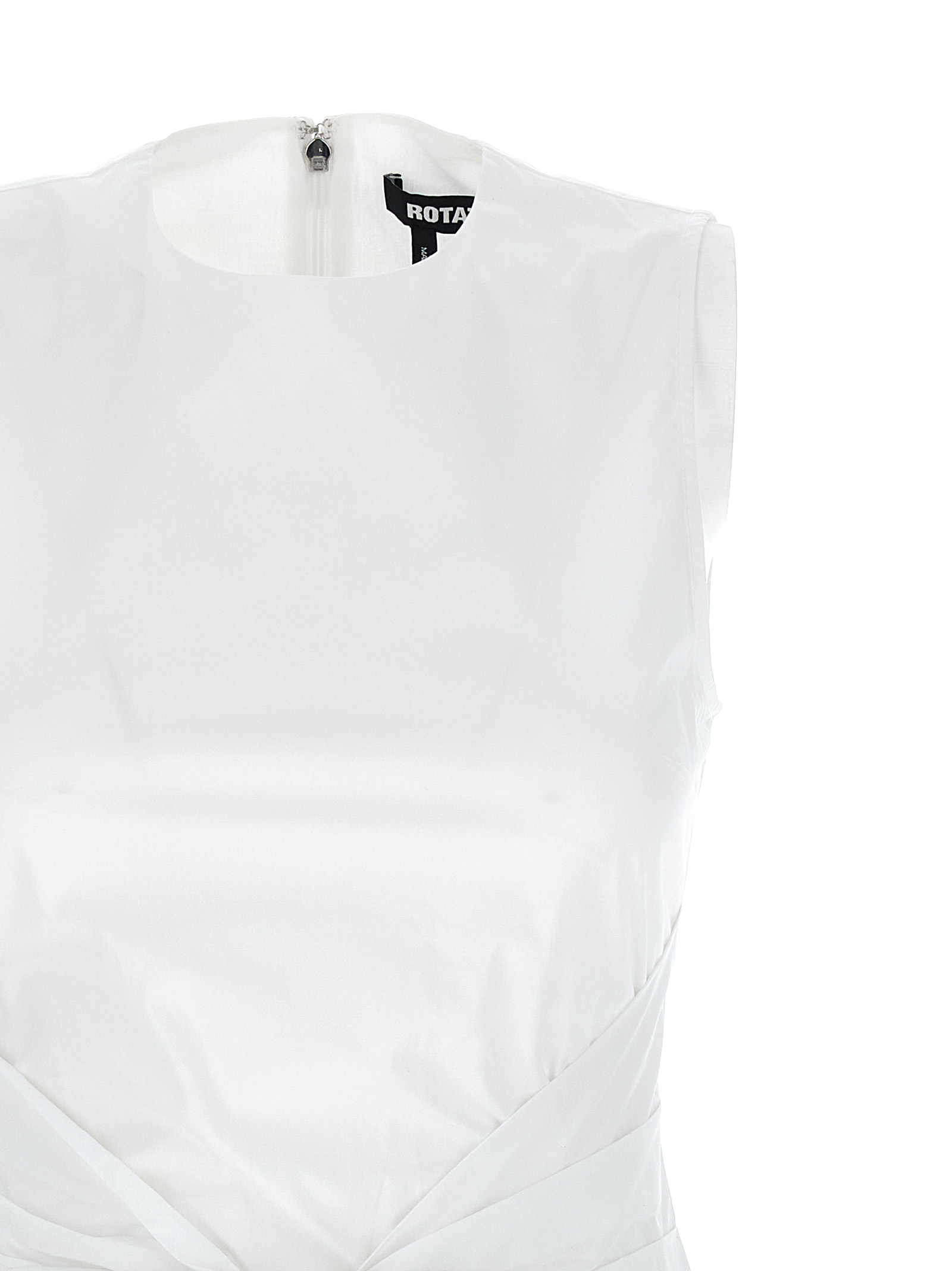 Sleeveless W/Bow mini dress in cotton poplin with sheath dress with maxi front bow detail, back zip closure and logo charm.