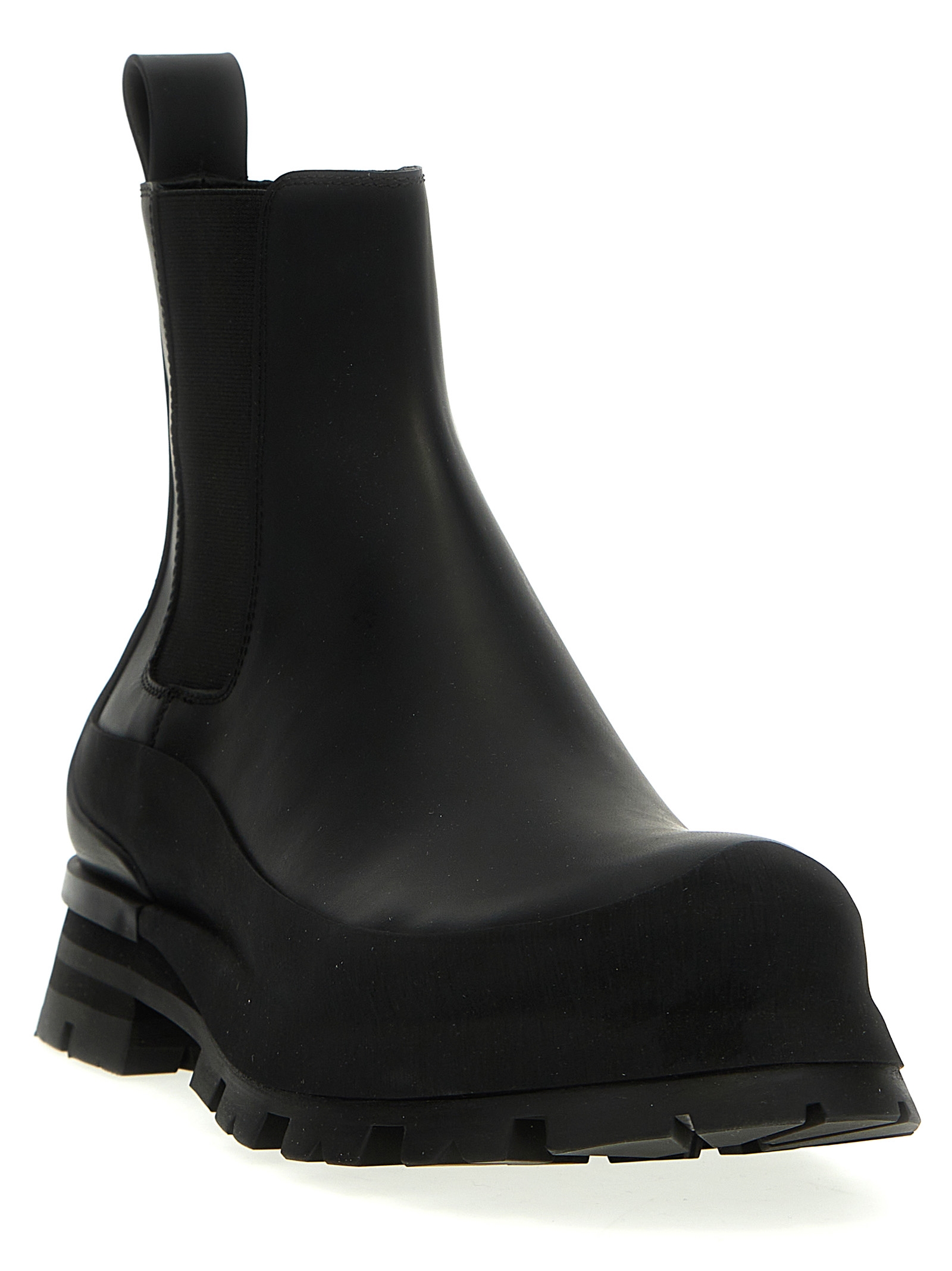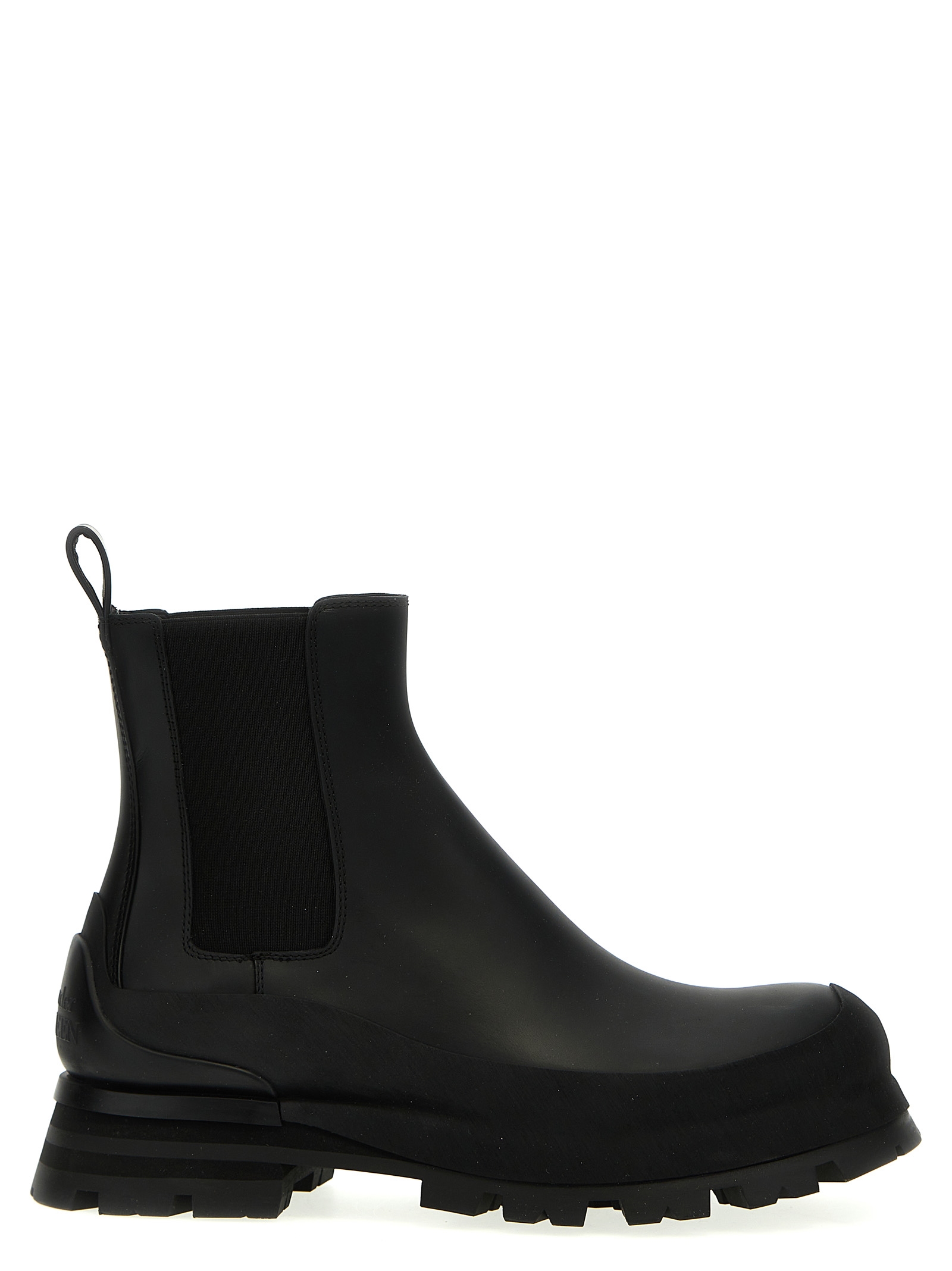 Leather ‘Wander’ ankle boot, side elastic, rubber sole..