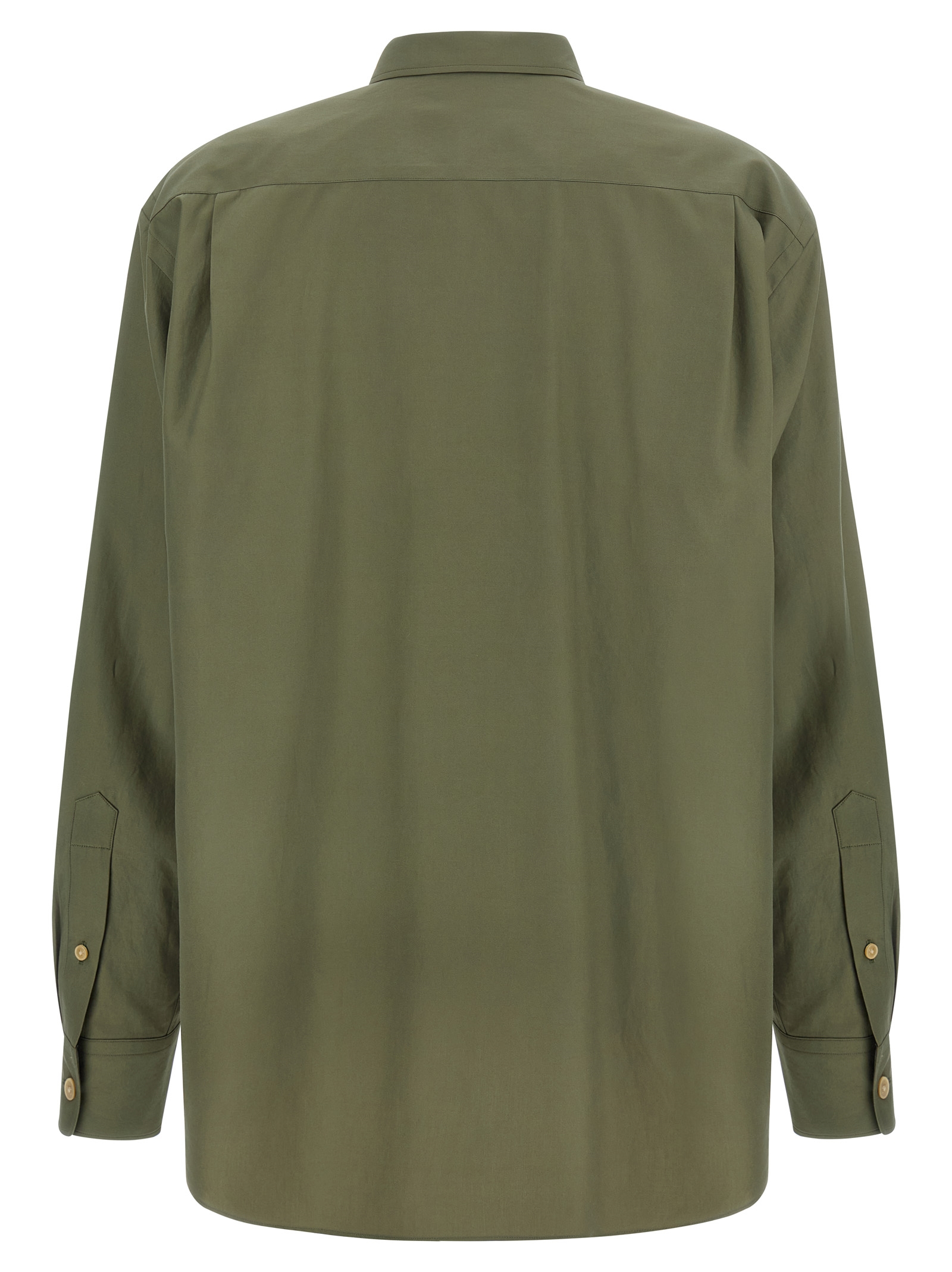 ‘Washed Finx Twill’ cotton shirt with loose fit, straight linne cut, pointed collar, front button closure, long sleeves with cuffs and buttons.