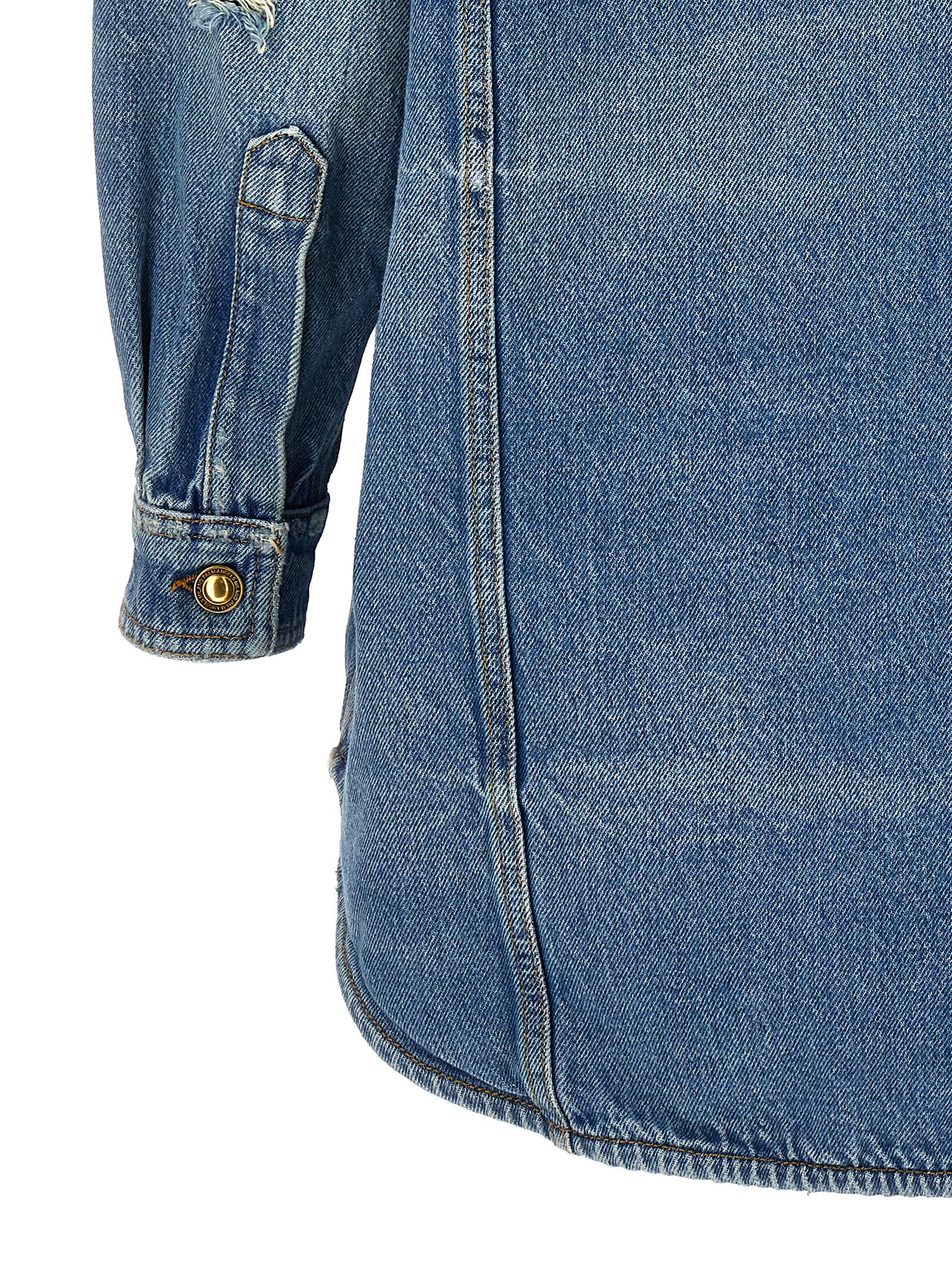 ‘Washed Logo’ cotton denim jacket with back logo, button closure, pockets, long cuffed sleeves.
