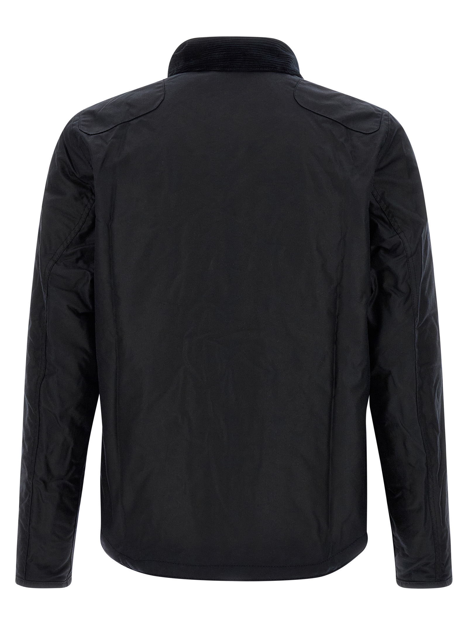 Iconic ‘Wax Reelin’ waxed cotton jacket with corduroy collar, slightly padded and quilted interior, double zip and clip-on button closure, pockets, long sleeves, logo embroidery.