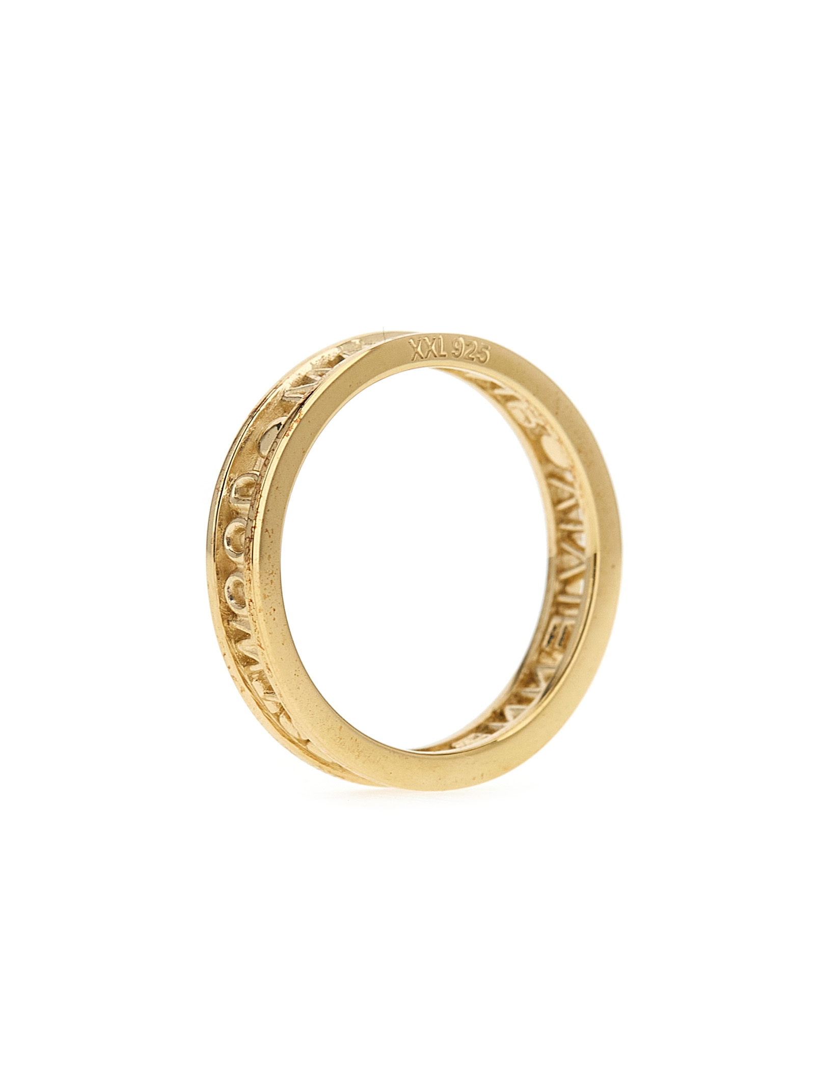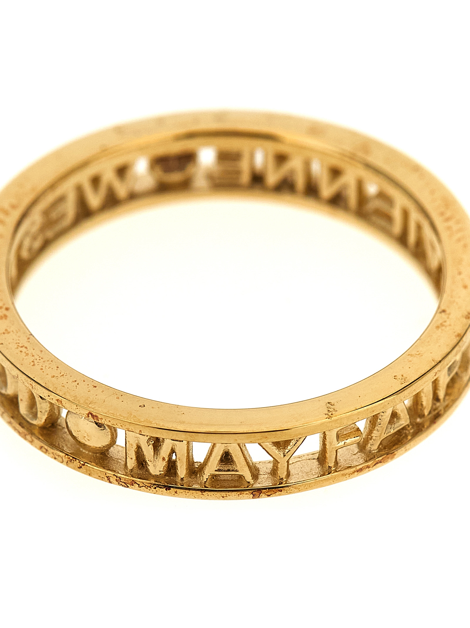 ‘Westminster’ ring in 925 silver in gold color, Vivienne Westwood Mayfair written in a carving along the band.