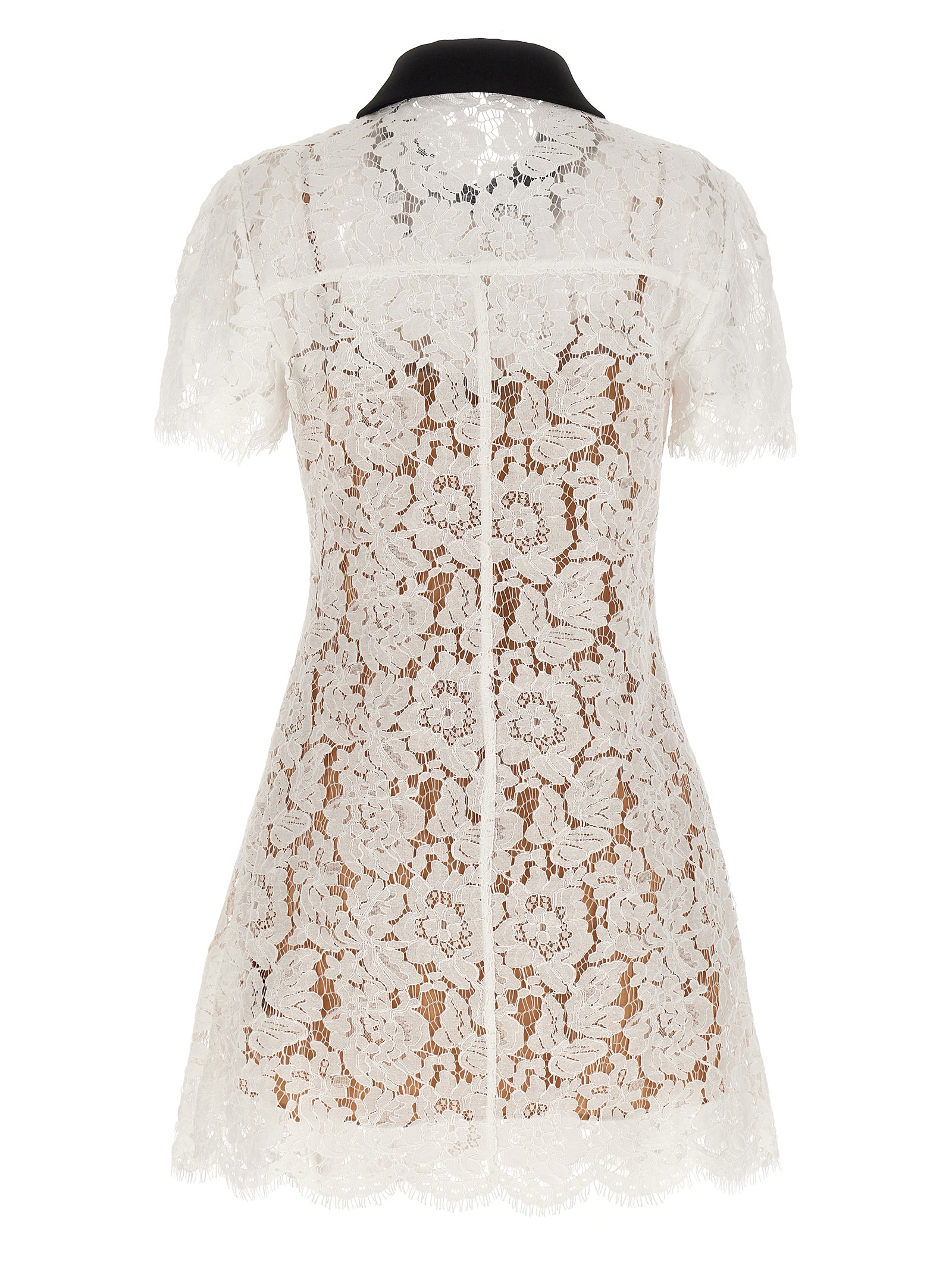 ‘White Lace Contrast Collar Mini’ semi-transparent lace dress with contrasting details, chemisier model, front button closure, pockets, short sleeves, removable petticoat.