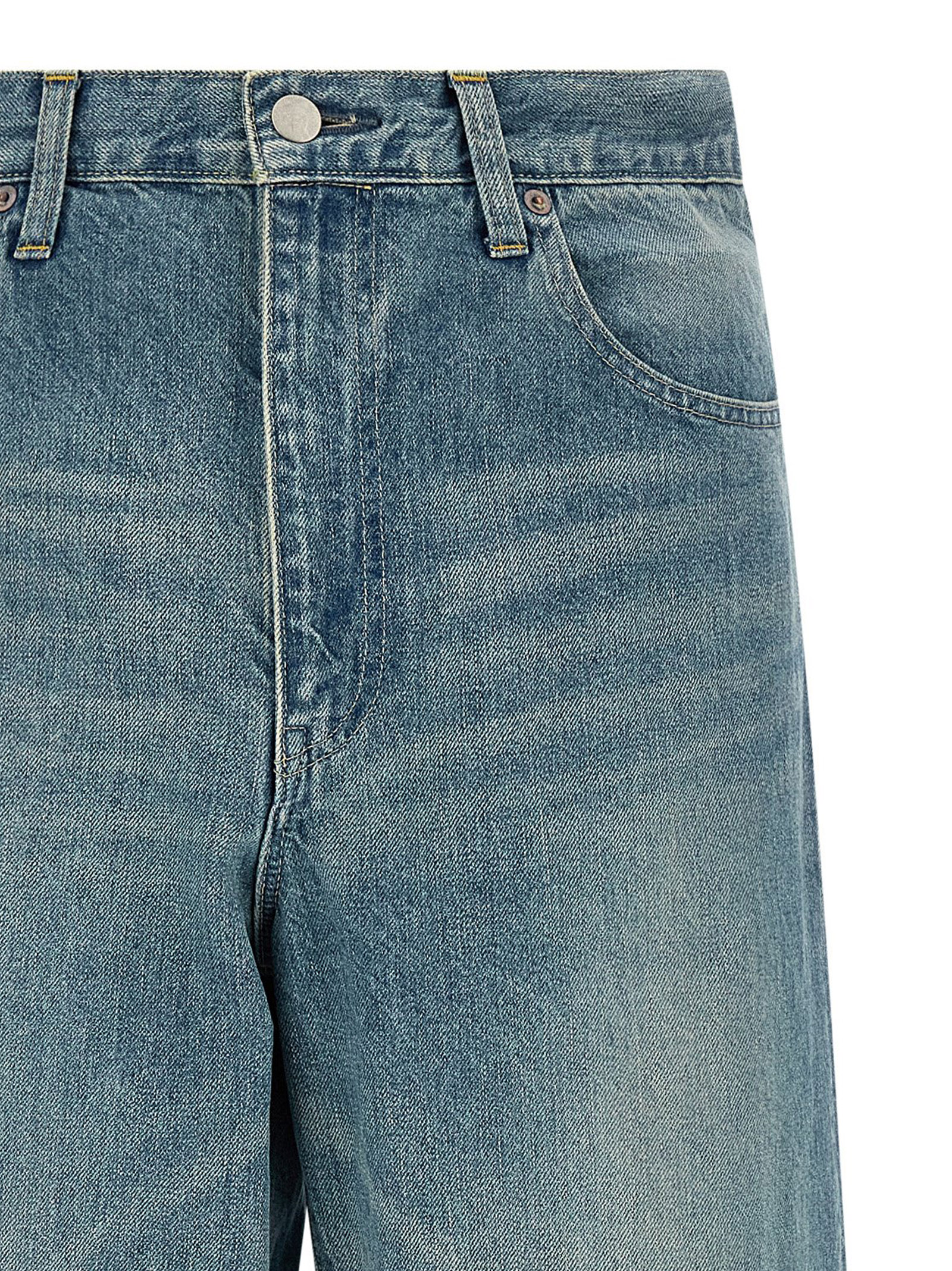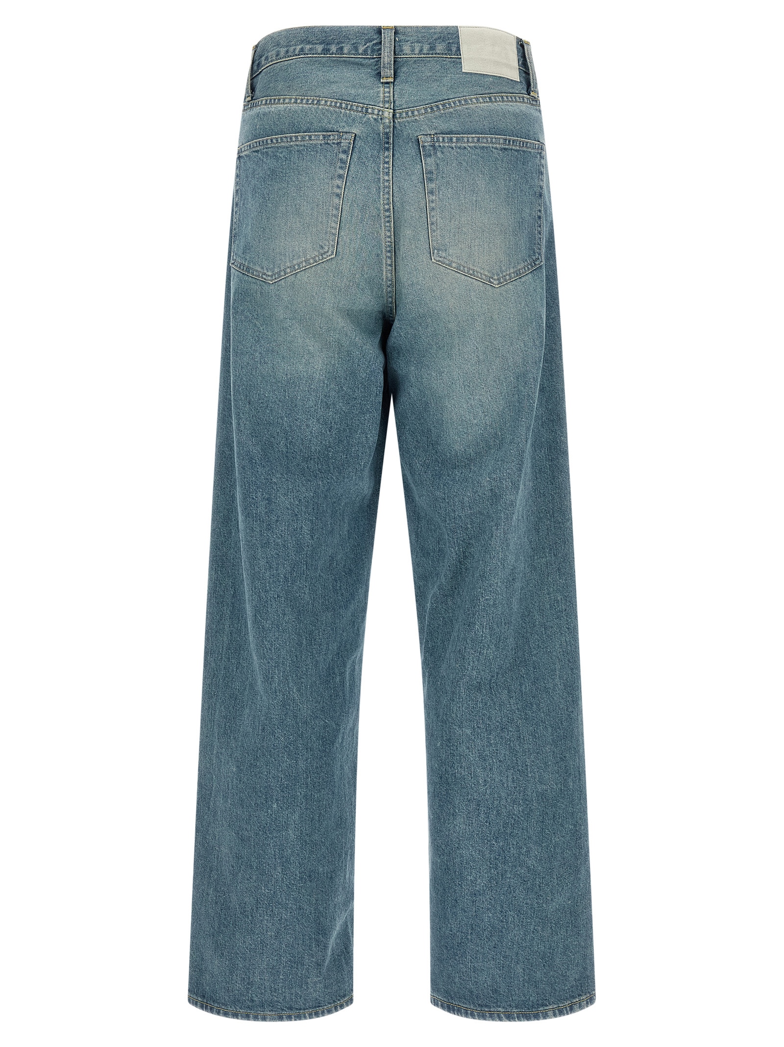 11.5 Oz cotton denim jeans with slightly used effect wash, straight and wide mid-waist model, 5 pockets, front button closure, leather back logo tag.