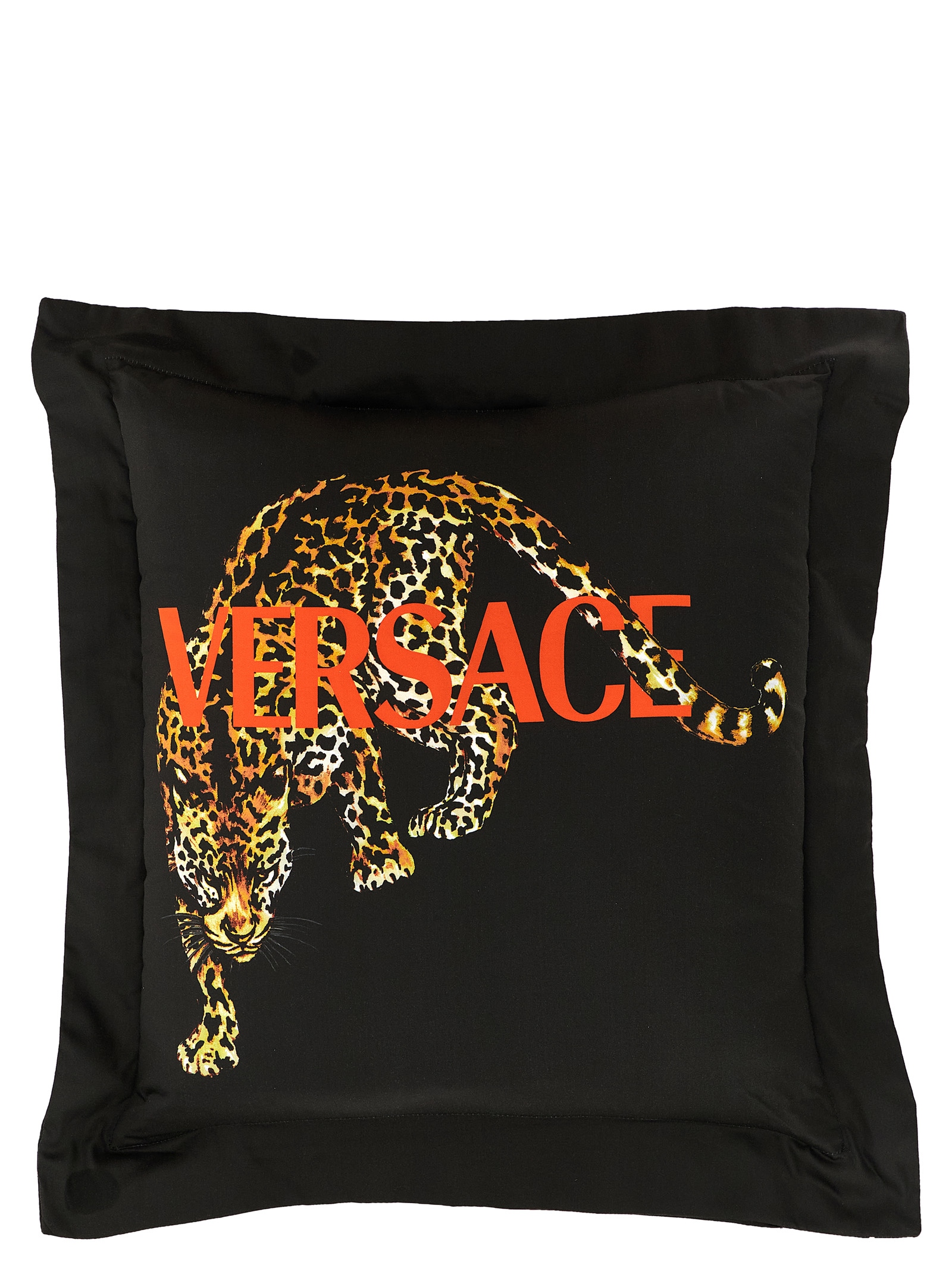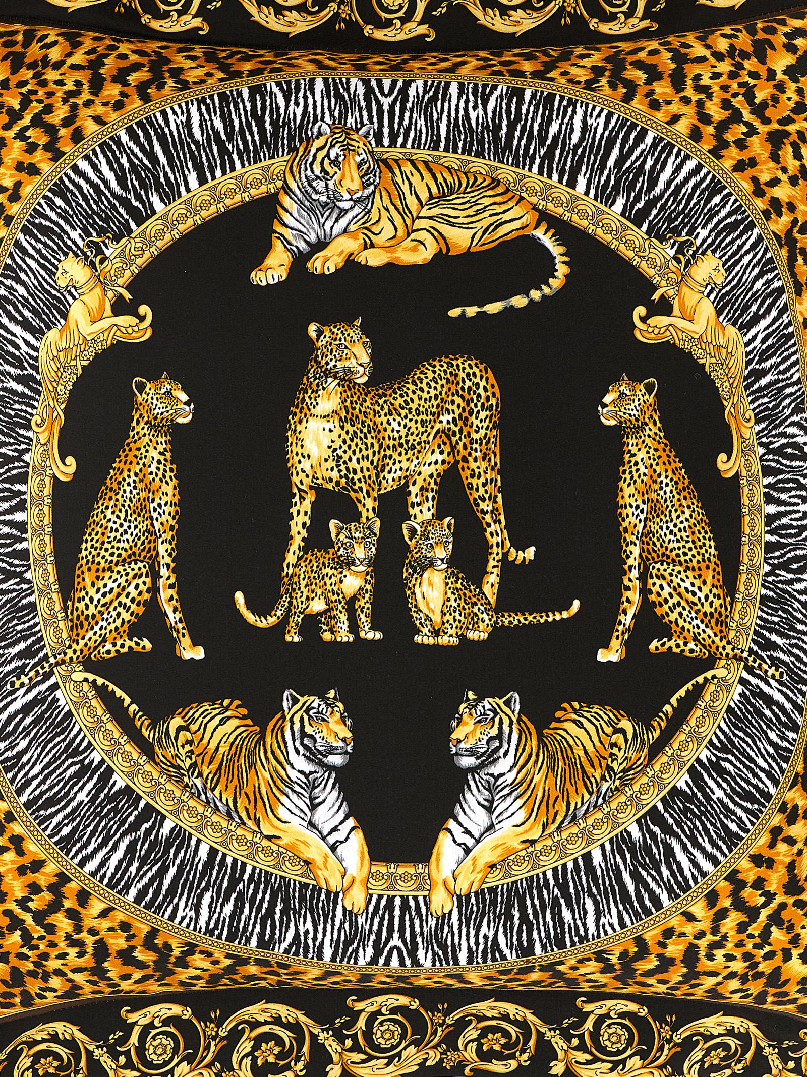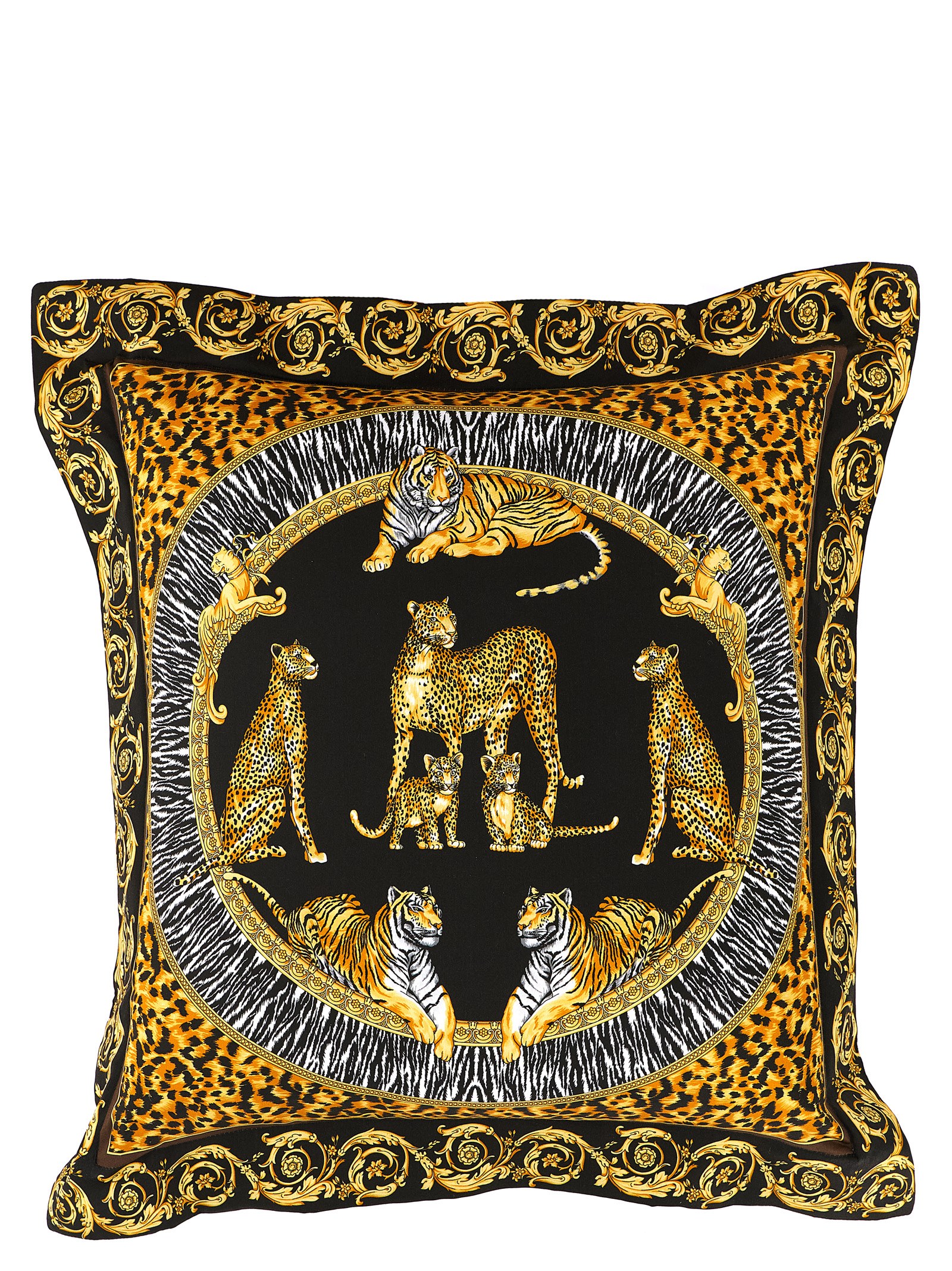 Double face cushion in ‘Wild Cats’ print fabric, flywheel piping, padding.