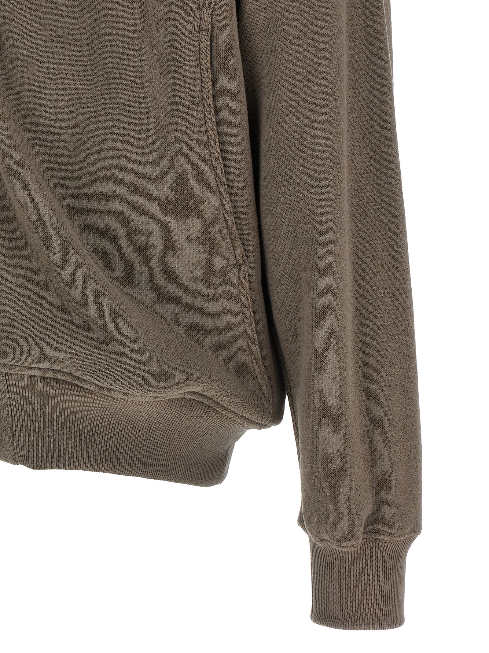‘Windbreaker’ hoodie in brushed cotton with front zip closure, pockets, long sleeves with cuffs and dropped shoulders, and headband.